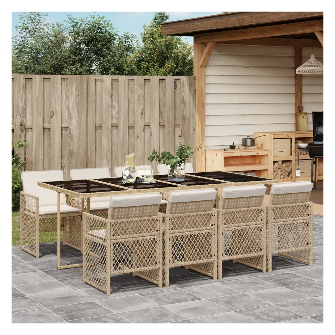 Cet ensemble de salle à manger de jardin est un excellent choix pour les repas en plein air ou pour vous détendre dans le jardin, l'arrière-cour ou le patio. Matériau durable : la résine tressée, également connue sous le nom de poly rotin, est un matériau synthétique solide et nécessitant peu d'entretien qui ressemble au rotin naturel. Elle est légère, facile à nettoyer et couramment utilisée pour les meubles d'extérieur en raison de sa durabilité et de ses propriétés de résistance aux intempéries. Dessus en verre : le dessus de la table d'extérieur est fabriqué en verre trempé solide et durable, ce qui le rend facile à nettoyer avec un chiffon humide et ajoute une touche d'élégance à votre espace extérieur. Rangement compact : ces chaises sont dotées d'un dossier rabattable, ce qui permet de les ranger facilement sous la table. Une fois pliées, elles se rangent parfaitement sous la table, formant un cube peu encombrant. Expérience d'assise confortable : ce mobilier d'extérieur, doté de coussins épais, offre une expérience d'assise confortable. Housse amovible et lavable : ces coussins de siège sont dotés de housses amovibles pour un lavage et un entretien faciles. Les housses de coussin de chaise ont un rabat à l'arrière pour une fixation facile aux chaises. Bon à savoir :Pour que vos meubles d'extérieur restent beaux, nous vous recommandons de les protéger avec une housse imperméable.