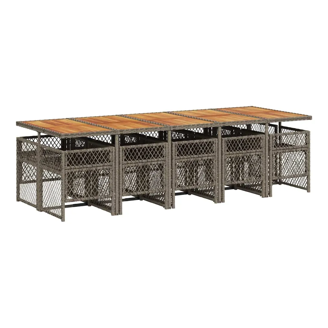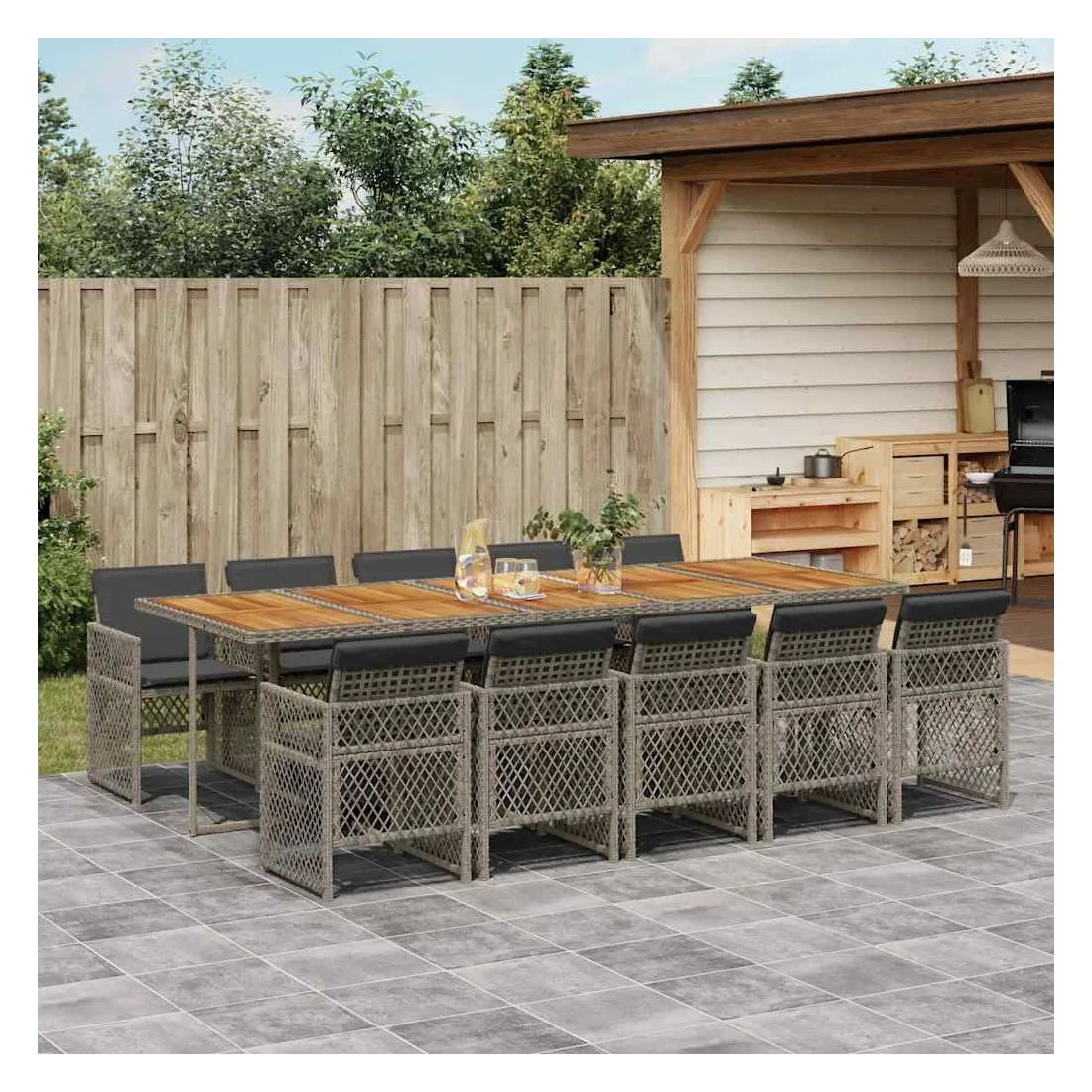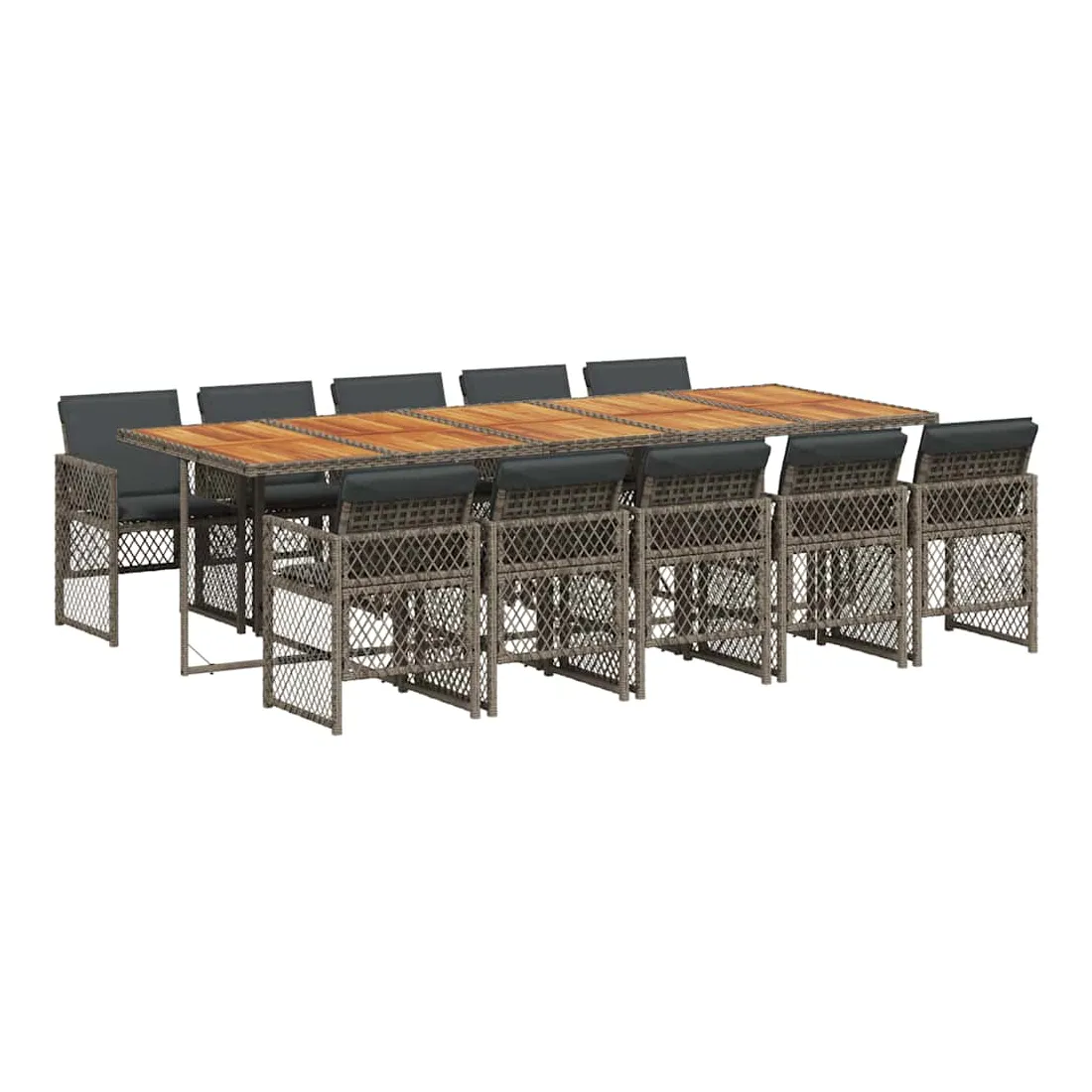 Ensemble à manger de jardin 11pcs avec coussins gris poly rotin