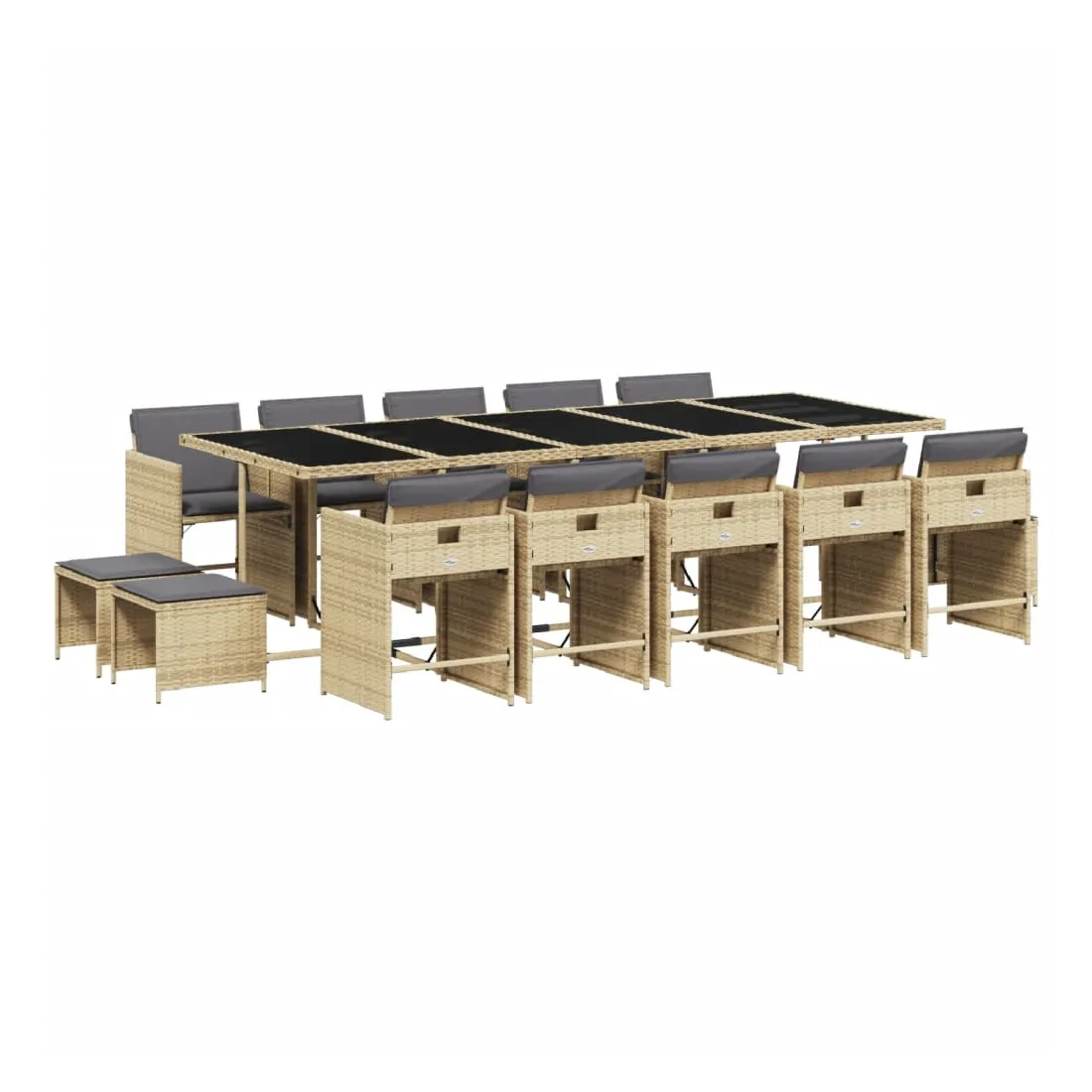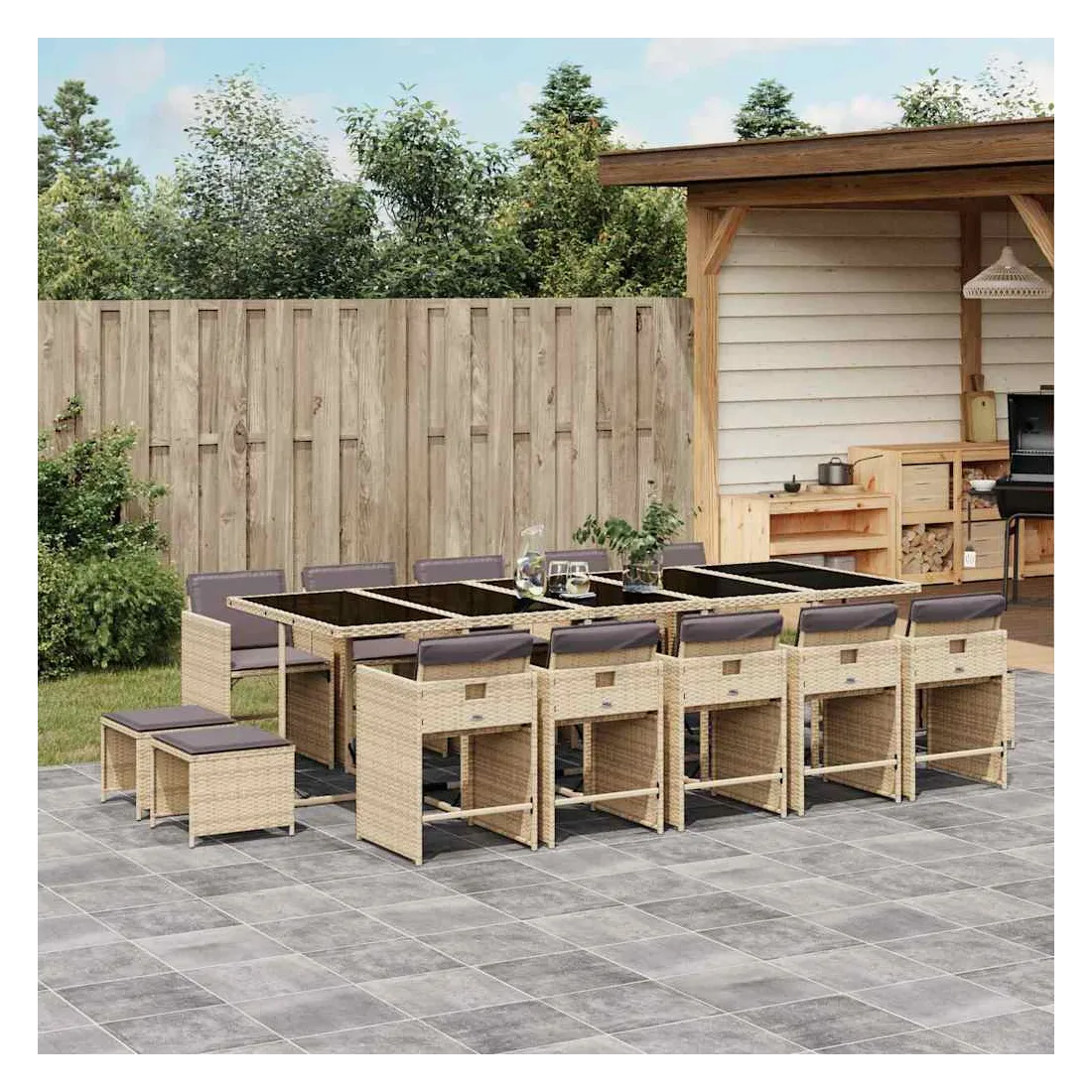 Cet ensemble de salle à manger de jardin est un excellent choix pour les repas en plein air ou pour vous détendre dans le jardin, dans l'arrière-cour ou sur la terrasse. Matériau durable : la résine tressée, également connue sous le nom de poly rotin, est un matériau synthétique solide et nécessitant peu d'entretien qui ressemble au rotin naturel. Il est léger, facile à nettoyer et couramment utilisé pour les meubles d'extérieur en raison de sa durabilité et de ses propriétés de résistance aux intempéries.Rangement compact : ces chaises sont dotées d'un dossier rabattable, ce qui permet de les ranger facilement sous la table. Une fois pliées, elles se rangent parfaitement sous la table, formant un cube peu encombrant. De plus, les tabourets peuvent également être rangés sous les chaises, maximisant encore davantage l'efficacité de l'espace.Expérience d'assise confortable : ce mobilier d'extérieur, doté de coussins épais, offre une expérience d'assise confortable.Housse amovible et lavable : ces coussins de siège sont dotés de housses amovibles pour un lavage et un entretien faciles. Les housses de coussin de chaise ont un rabat à l'arrière pour une fixation facile aux chaises.Dessus stable et facile à nettoyer : cette table de jardin est dotée d'un dessus en verre trempé robuste, durable et facile à nettoyer à l'aide d'un chiffon humide. Bon à savoir : Pour que vos meubles d'extérieur restent beaux, nous vous recommandons de les protéger avec une housse imperméable.