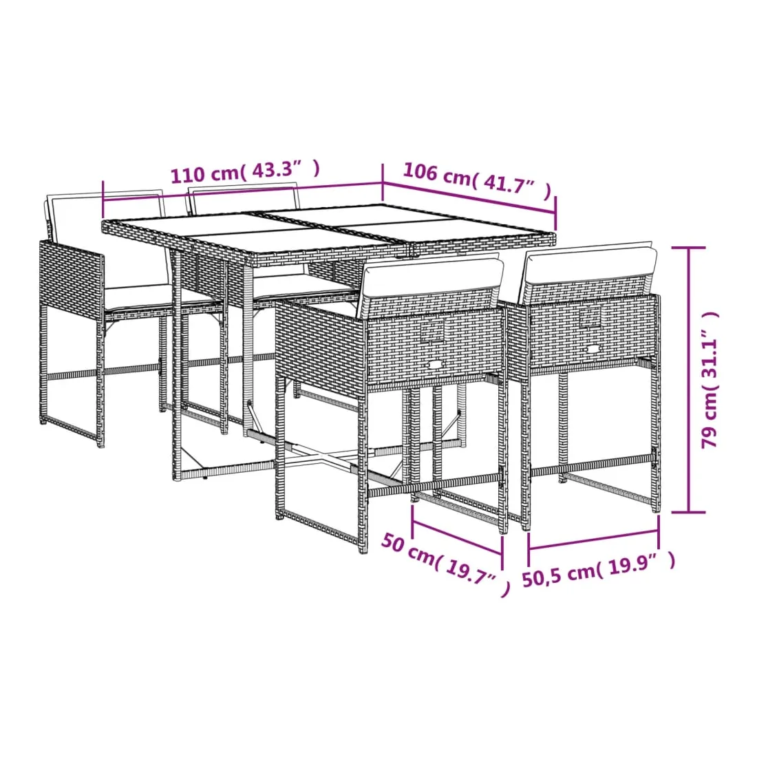 Cet ensemble de salle à manger de jardin est un excellent choix pour les repas en plein air ou pour vous détendre dans le jardin, dans l'arrière-cour ou sur la terrasse. Matériau durable : la résine tressée, également connue sous le nom de poly rotin, est un matériau synthétique solide et nécessitant peu d'entretien qui ressemble au rotin naturel. Il est léger, facile à nettoyer et couramment utilisé pour les meubles d'extérieur en raison de sa durabilité et de ses propriétés de résistance aux intempéries.Rangement compact : ces chaises sont dotées d'un dossier rabattable, ce qui permet de les ranger facilement sous la table. Une fois pliées, elles se rangent parfaitement sous la table, formant un cube peu encombrant.Expérience d'assise confortable : ce mobilier d'extérieur, doté de coussins épais, offre une expérience d'assise confortable.Housse amovible et lavable : ces coussins de siège sont dotés de housses amovibles pour un lavage et un entretien faciles. Les housses de coussin ont un rabat à l'arrière pour une fixation facile aux dossiers.Dessus en verre : le dessus de la table d'extérieur est fabriqué en verre trempé solide et durable, ce qui le rend facile à nettoyer avec un chiffon humide et ajoute une touche d'élégance à votre espace extérieur. Bon à savoir :Pour que vos meubles d'extérieur restent beaux, nous vous recommandons de les protéger avec une housse imperméable.