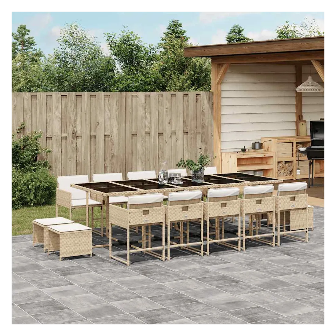 Cet ensemble de salle à manger de jardin est un excellent choix pour les repas en plein air ou pour vous détendre dans le jardin, dans l'arrière-cour ou sur la terrasse. Matériau durable : la résine tressée, également connue sous le nom de poly rotin, est un matériau synthétique solide et nécessitant peu d'entretien qui ressemble au rotin naturel. Il est léger, facile à nettoyer et couramment utilisé pour les meubles d'extérieur en raison de sa durabilité et de ses propriétés de résistance aux intempéries.Rangement compact : ces chaises sont dotées d'un dossier rabattable, ce qui permet de les ranger facilement sous la table. Une fois pliées, elles se rangent parfaitement sous la table, formant un cube peu encombrant. De plus, les tabourets peuvent également être rangés sous les chaises, maximisant encore davantage l'efficacité de l'espace.Expérience d'assise confortable : ce mobilier d'extérieur, doté de coussins épais, offre une expérience d'assise confortable.Housse amovible et lavable : ces coussins de siège sont dotés de housses amovibles pour un lavage et un entretien faciles. Les housses de coussin ont un rabat à l'arrière pour une fixation facile aux dossiers.Dessus en verre : le dessus de la table d'extérieur est fabriqué en verre trempé solide et durable, ce qui le rend facile à nettoyer avec un chiffon humide et ajoute une touche d'élégance à votre espace extérieur. Bon à savoir : Pour que vos meubles d'extérieur restent beaux, nous vous recommandons de les protéger avec une housse imperméable.