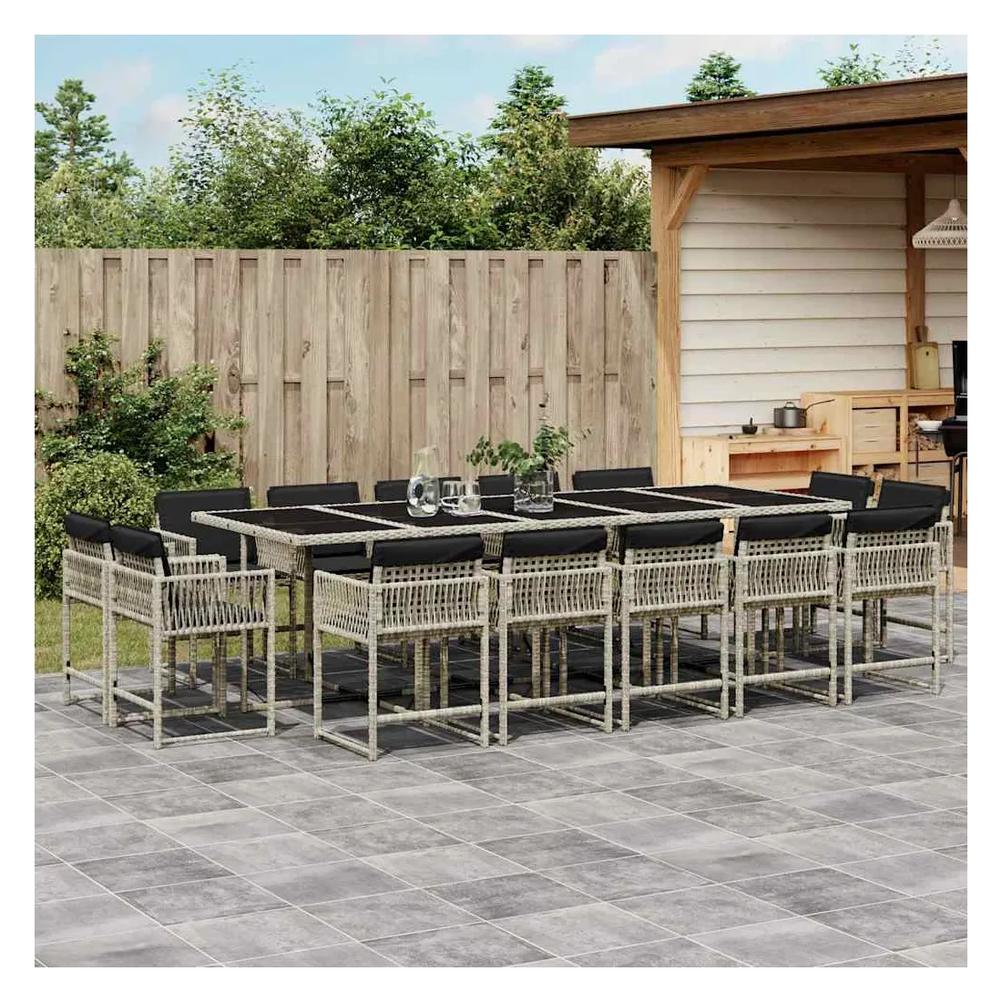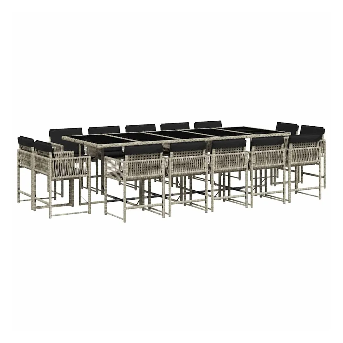 Ensemble à manger de jardin et coussins 15 pcs gris clair rotin