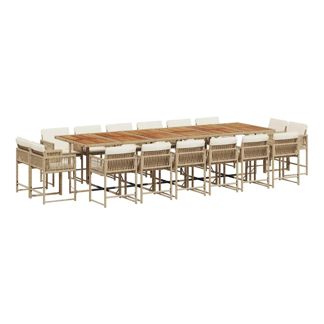 Cet ensemble de salle à manger de jardin est un excellent choix pour les repas en plein air ou pour vous détendre dans le jardin, dans l'arrière-cour ou sur la terrasse. Matériau durable : la résine tressée, également connue sous le nom de poly rotin, est un matériau synthétique solide et nécessitant peu d'entretien qui ressemble au rotin naturel. Il est léger, facile à nettoyer et couramment utilisé pour les meubles d'extérieur en raison de sa durabilité et de ses propriétés de résistance aux intempéries.Rangement compact : ces chaises sont dotées d'un dossier rabattable, ce qui permet de les ranger facilement sous la table. Une fois pliées, elles se rangent parfaitement sous la table, formant un cube peu encombrant.Expérience d'assise confortable : ce mobilier d'extérieur, doté de coussins épais, offre une expérience d'assise confortable.Housse amovible et lavable : ces coussins de siège sont dotés de housses amovibles pour un lavage et un entretien faciles. Les housses de coussin ont un rabat à l'arrière pour une fixation facile aux dossiers.Dessus stable et facile à nettoyer : cette table de jardin a un dessus en bois d'acacia robuste, durable et facile à nettoyer avec un chiffon humide. Bon à savoir :Pour que vos meubles d'extérieur restent beaux, nous vous recommandons de les protéger avec une housse imperméable.