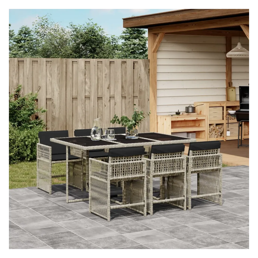 Cet ensemble de salle à manger de jardin est un excellent choix pour les repas en plein air ou pour vous détendre dans le jardin, l'arrière-cour ou le patio. Matériau durable : la résine tressée, également connue sous le nom de poly rotin, est un matériau synthétique solide et nécessitant peu d'entretien qui ressemble au rotin naturel. Il est léger, facile à nettoyer et couramment utilisé pour les meubles d'extérieur en raison de sa durabilité et de ses propriétés de résistance aux intempéries.Rangement compact : ces chaises sont dotées d'un dossier rabattable, ce qui permet de les ranger facilement sous la table. Une fois pliées, elles se rangent parfaitement sous la table, formant un cube peu encombrant.Expérience d'assise confortable : ce mobilier d'extérieur, doté de coussins épais, offre une expérience d'assise confortable.Housse amovible et lavable : ces coussins de siège sont dotés de housses amovibles pour un lavage et un entretien faciles. Les housses de coussin ont un rabat à l'arrière pour une fixation facile aux dossiers.Dessus en verre : le dessus de la table d'extérieur est fabriqué en verre trempé solide et durable, ce qui le rend facile à nettoyer avec un chiffon humide et ajoute une touche d'élégance à votre espace extérieur. Bon à savoir :Pour que vos meubles d'extérieur restent beaux, nous vous recommandons de les protéger avec une housse imperméable.