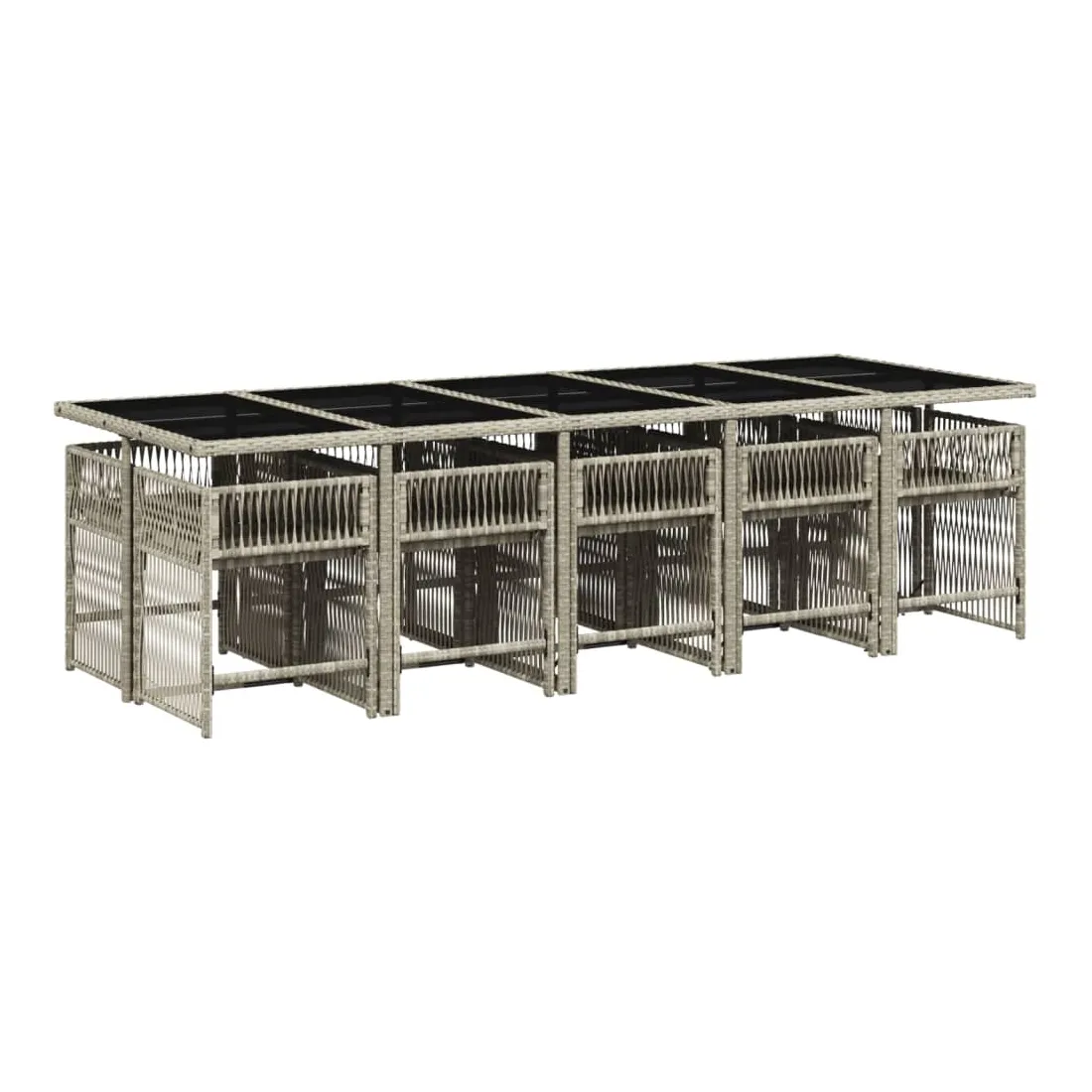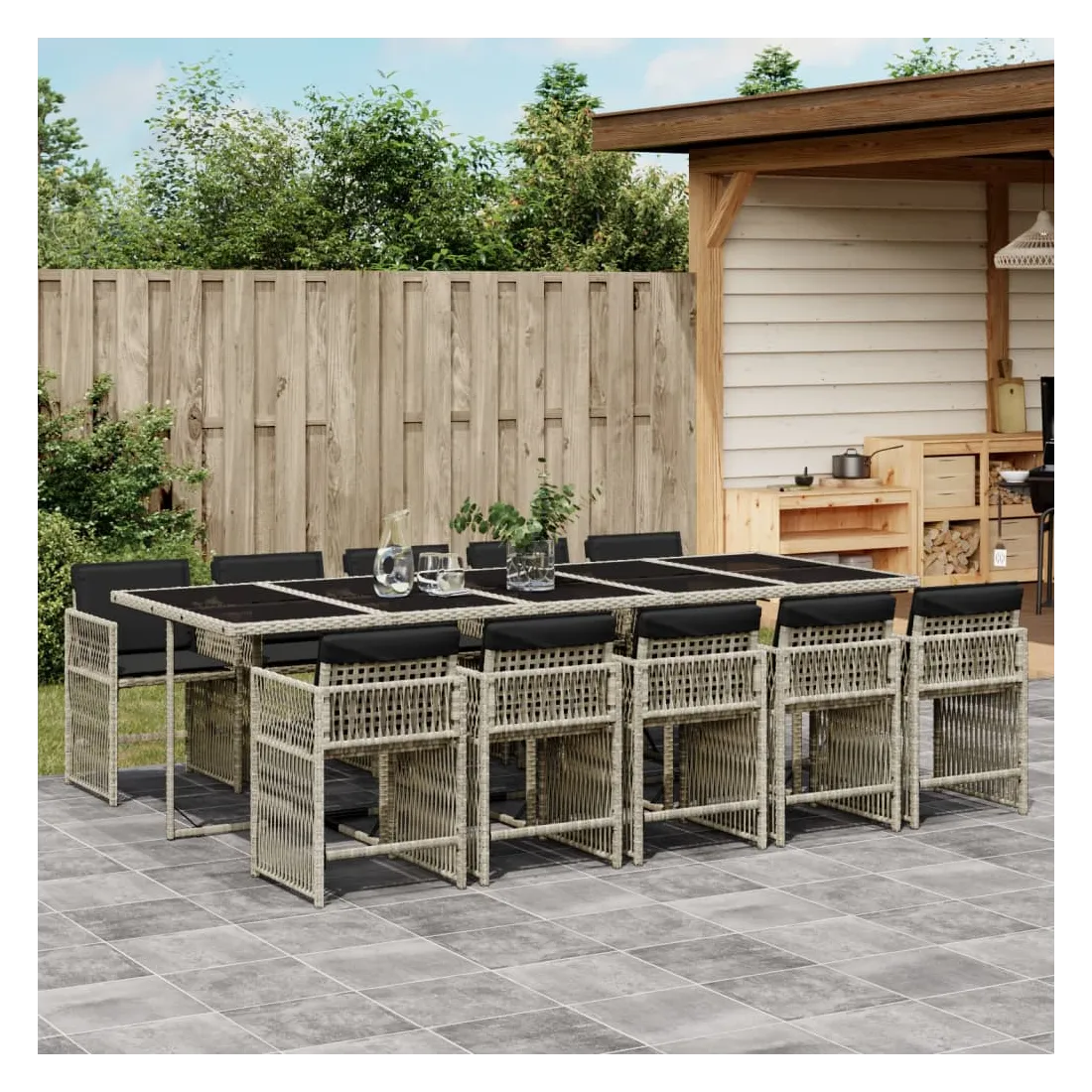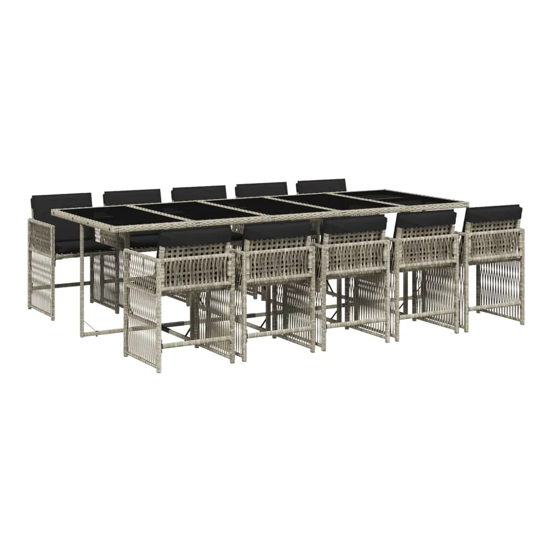 Ensemble à manger de jardin 11pcs avec coussins gris poly rotin