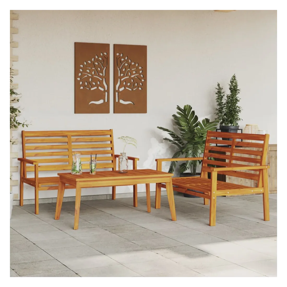 vidaXLCet ensemble de salon de jardin en bois a un design élégant et constitue un excellent choix pour vous détendre et profiter du jardin ou du patio. Bois d'acacia massif : l'ensemble de salon d'extérieur est fabriqué en bois d'acacia massif pour plus de robustesse et de stabilité. Le bois d'acacia solide est un beau matériau naturel. Le bois d'acacia a de beaux grains de bois qui rendent chaque meuble unique et légèrement différent les uns des autres.Expérience d'assise confortable : doté d'accoudoirs et d'un dossier, le salon de jardin vous offre un confort optimal.Dessus stable et facile à nettoyer : cette table de jardin a un dessus en bois d'acacia robuste, durable et facile à nettoyer avec un chiffon humide.Nombreuses applications : le siège de jardin est parfait pour tout porche avant, patio, arrière-cour, pelouse, jardin, etc. Bon à savoir :Pour que vos meubles d'extérieur restent beaux, nous vous recommandons de les protéger avec une housse imperméable.