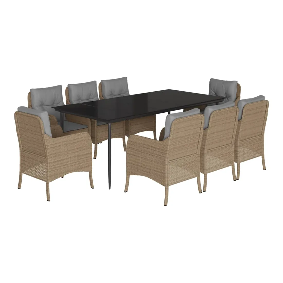 Ensemble à manger de jardin et coussins 9 pcs beige Poly rotin