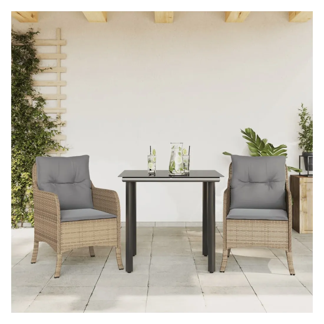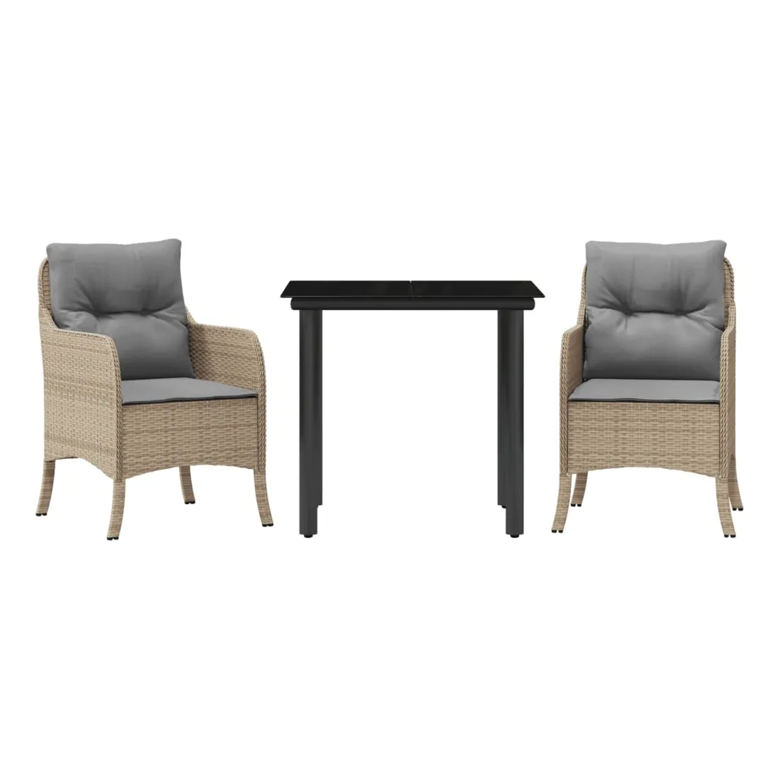 Cet ensemble de salle à manger de jardin est un excellent choix pour les repas en plein air ou pour vous détendre dans le jardin, l'arrière-cour ou le patio. Matériau durable : la résine tressée, également connue sous le nom de poly rotin, est un matériau synthétique solide et nécessitant peu d'entretien qui ressemble au rotin naturel. Il est léger, facile à nettoyer et couramment utilisé pour les meubles d'extérieur en raison de sa durabilité et de ses propriétés de résistance aux intempéries.Expérience d'assise confortable : ce mobilier d'extérieur, doté de coussins épais, offre une expérience d'assise confortable.Housse amovible et lavable : ces coussins de siège sont dotés de housses amovibles pour un lavage et un entretien faciles.Dessus en verre : le dessus de la table d'extérieur est fabriqué en verre trempé solide et durable, ce qui le rend facile à nettoyer avec un chiffon humide et ajoute une touche d'élégance à votre espace extérieur.Cadre robuste et stable : le cadre en acier enduit de poudre assure la solidité et la stabilité du meuble de jardin pour une utilisation quotidienne à l'extérieur. Bon à savoir :Pour que vos meubles d'extérieur restent beaux, nous vous recommandons de les protéger avec une housse imperméable.