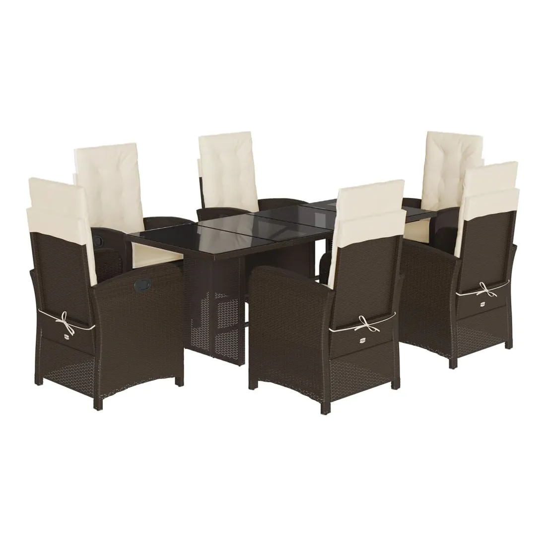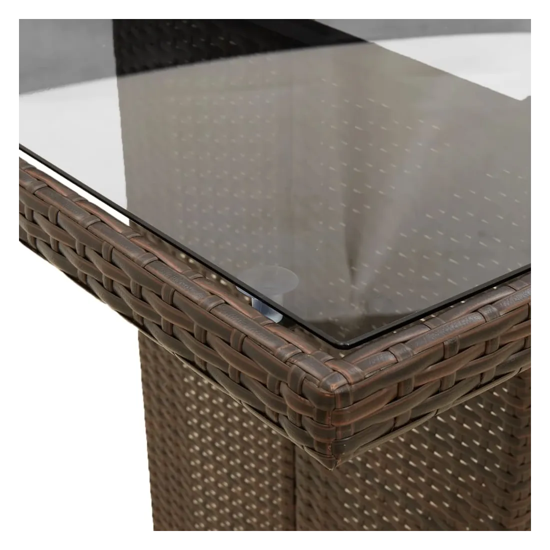 Cet ensemble de salle à manger de jardin est un excellent choix pour les repas en plein air ou pour vous détendre dans le jardin, dans l'arrière-cour ou sur la terrasse. Matériau durable : la résine tressée, également connue sous le nom de poly rotin, est un matériau synthétique solide et nécessitant peu d'entretien qui ressemble au rotin naturel. Il est léger, facile à nettoyer et couramment utilisé pour les meubles d'extérieur en raison de sa durabilité et de ses propriétés de résistance aux intempéries.Dossier réglable : ce siège de jardin est doté d'une poignée. Vous pouvez régler le dossier dans n'importe quelle position en tirant sur la poignée et le remettre rapidement dans sa position initiale.Expérience d'assise confortable : ce mobilier d'extérieur, doté de coussins épais, offre une expérience d'assise confortable.Housse amovible et lavable : ces coussins de siège sont dotés de housses amovibles pour un lavage et un entretien faciles. Les coussins de dossier ont un rabat à l'arrière pour une fixation facile aux dossiers.Dessus en verre : le dessus de la table d'extérieur est fabriqué en verre trempé solide et durable, ce qui le rend facile à nettoyer avec un chiffon humide et ajoute une touche d'élégance à votre espace extérieur. Bon à savoir :Pour que vos meubles d'extérieur restent beaux, nous vous recommandons de les protéger avec une housse imperméable.