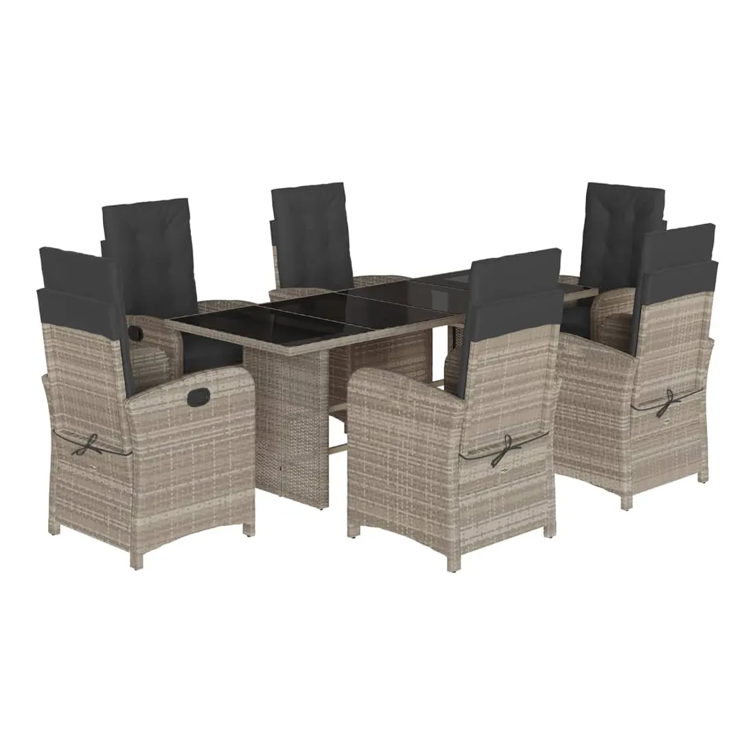 Ensemble à manger de jardin et coussins 7 pcs gris clair rotin