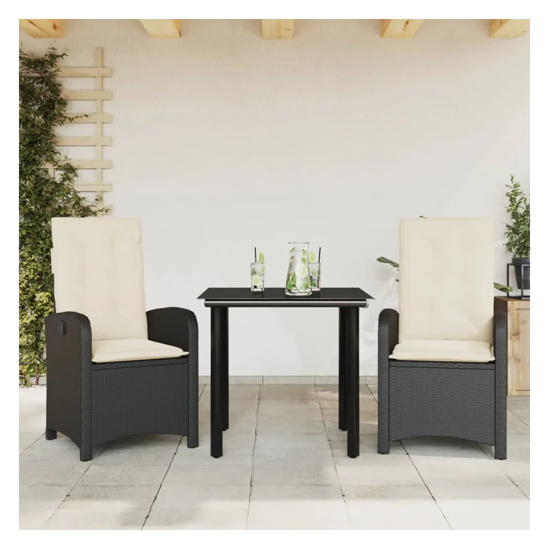 Cet ensemble de salle à manger de jardin est un excellent choix pour les repas en plein air ou pour vous détendre dans le jardin, dans l'arrière-cour ou sur la terrasse. Matériau durable : la résine tressée, également connue sous le nom de poly rotin, est un matériau synthétique solide et nécessitant peu d'entretien qui ressemble au rotin naturel. Il est léger, facile à nettoyer et couramment utilisé pour les meubles d'extérieur en raison de sa durabilité et de ses propriétés de résistance aux intempéries.Dossier réglable : ce siège de jardin est doté d'une poignée. Vous pouvez régler le dossier dans n'importe quelle position en tirant sur la poignée et le remettre rapidement dans sa position initiale.Expérience d'assise confortable : ce mobilier d'extérieur, doté de coussins épais, offre une expérience d'assise confortable.Housse amovible et lavable : ces coussins de siège sont dotés de housses amovibles pour un lavage et un entretien faciles. Les coussins de dossier ont un rabat à l'arrière pour une fixation facile aux dossiers.Dessus en verre : le dessus de la table d'extérieur est fabriqué en verre trempé solide et durable, ce qui le rend facile à nettoyer avec un chiffon humide et ajoute une touche d'élégance à votre espace extérieur. Bon à savoir :Pour que vos meubles d'extérieur restent beaux, nous vous recommandons de les protéger avec une housse imperméable.