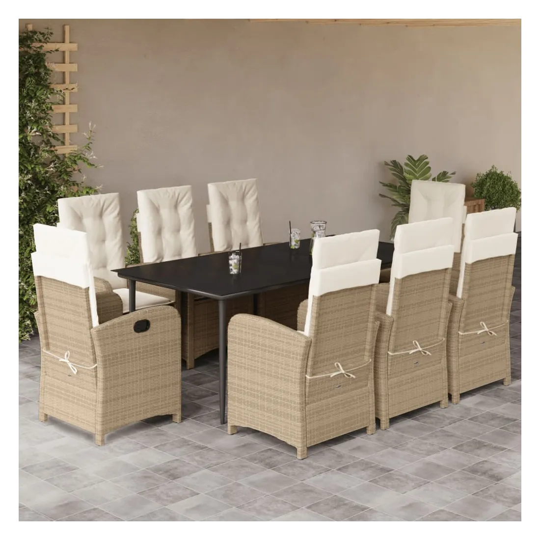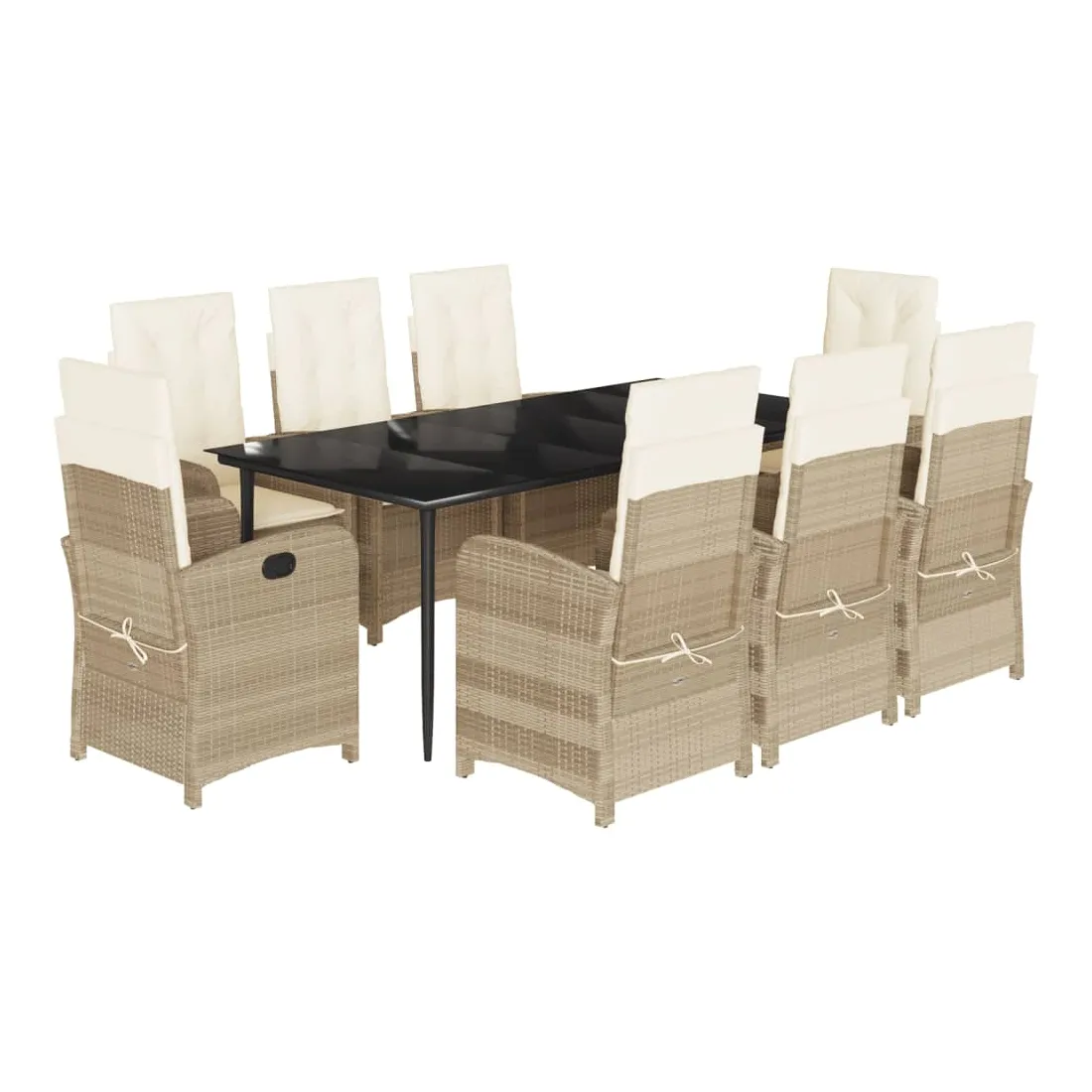Ensemble à manger de jardin et coussins 9 pcs beige Poly rotin