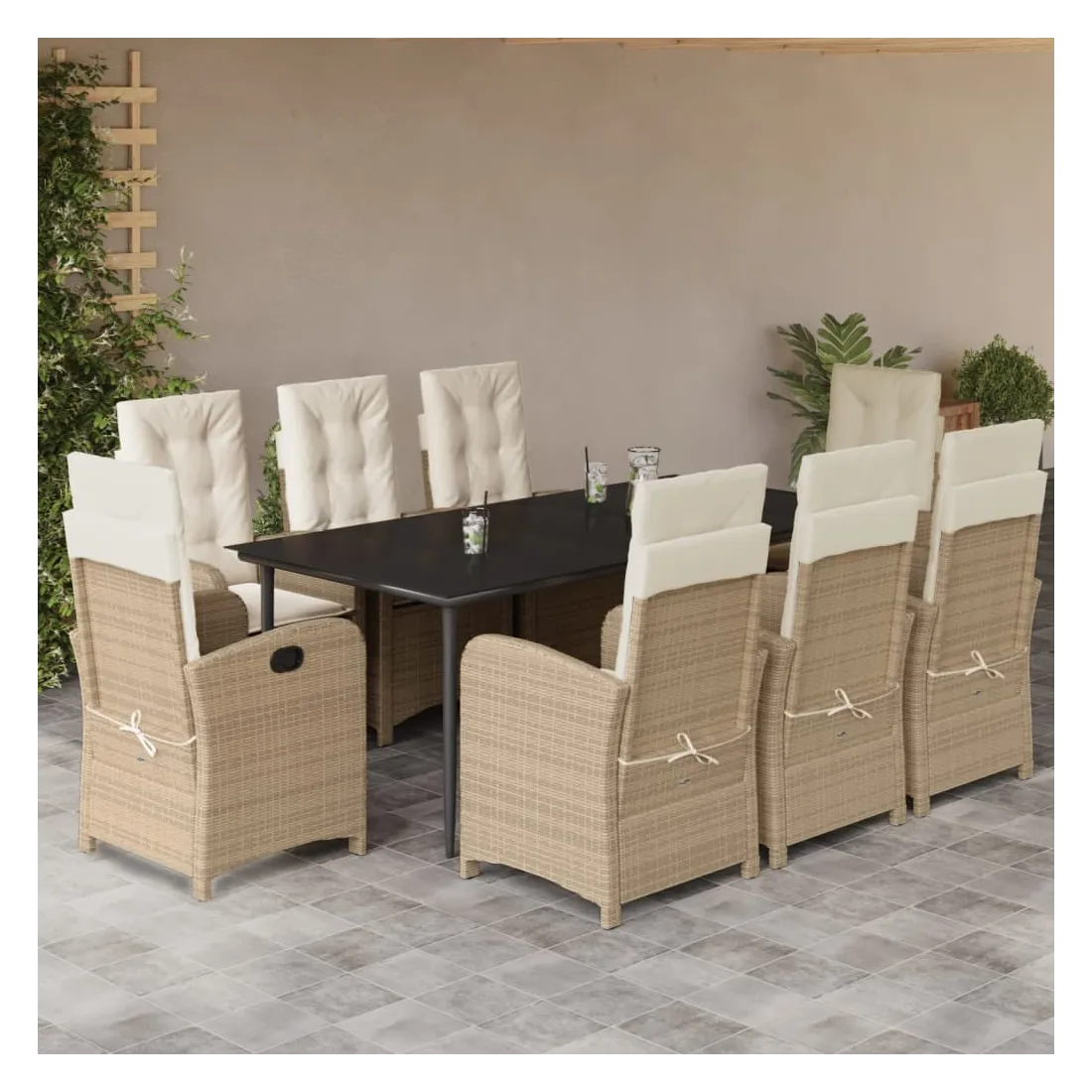 Ensemble à manger de jardin et coussins 9 pcs beige Poly rotin