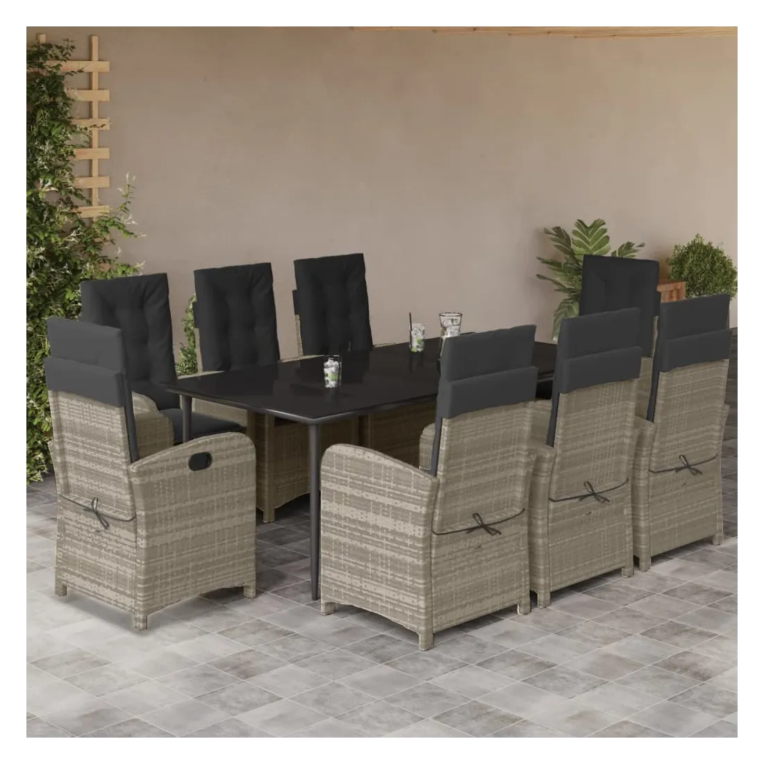 Ensemble à manger de jardin et coussins 9 pcs gris clair rotin