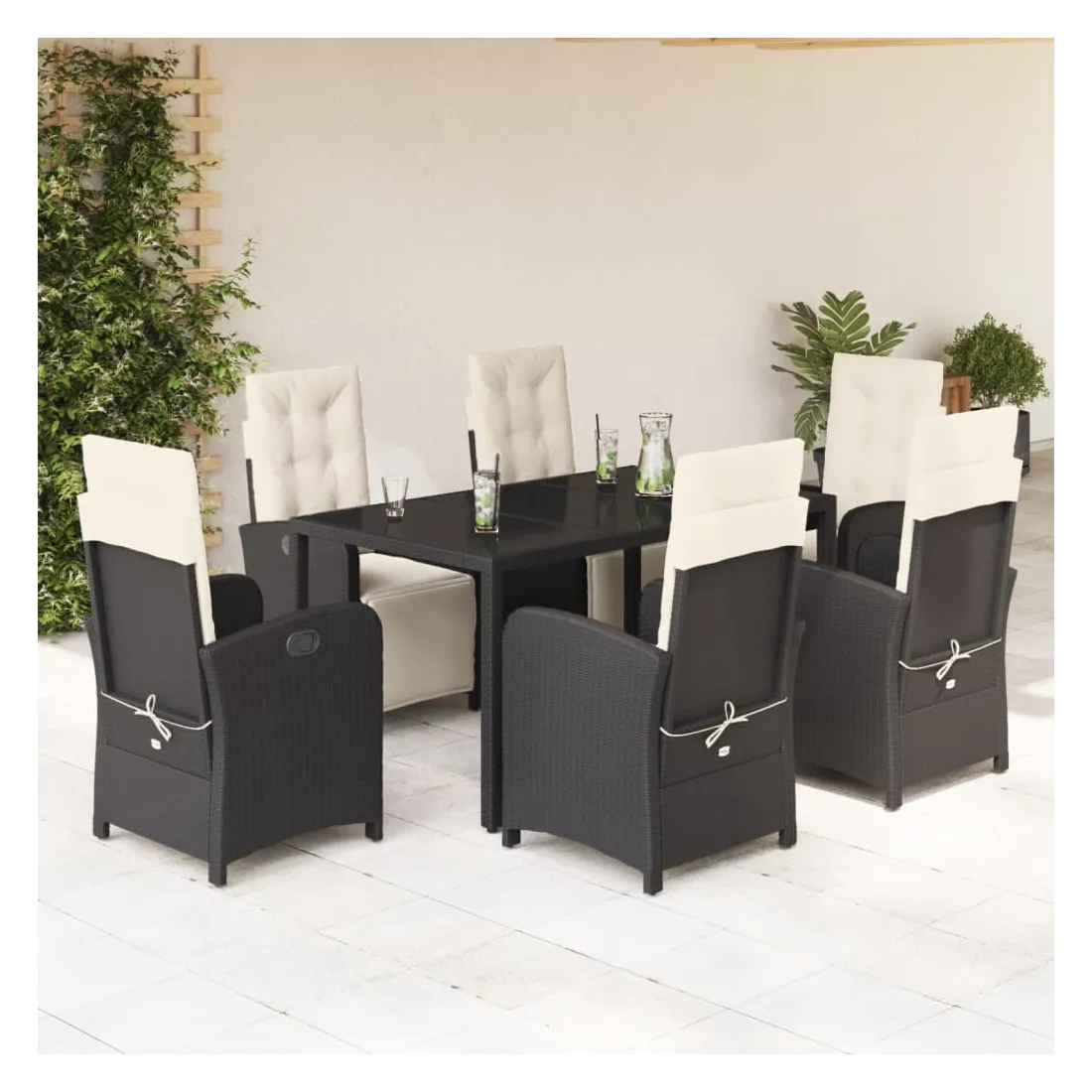 Savourez une tasse de café ou discutez avec votre famille et vos amis dans le jardin, l'arrière-cour ou sur le balcon avec cet ensemble de salle à manger de jardin confortable ! Matériau durable : la résine tressée, également connue sous le nom de poly rotin, est un matériau synthétique solide et nécessitant peu d'entretien qui ressemble au rotin naturel. Il est léger, facile à nettoyer et couramment utilisé pour les meubles d'extérieur en raison de sa durabilité et de ses propriétés de résistance aux intempéries.Dossier et repose-pied réglables : ce siège de jardin est doté d'une poignée. Vous pouvez régler le dossier et le repose-pied dans n'importe quelle position en tirant sur la poignée, et les remettre rapidement dans leur position initiale.Expérience d'assise confortable : ce mobilier d'extérieur, doté de coussins épais, offre une expérience d'assise confortable.Housse amovible et lavable : ces coussins de siège sont dotés de housses amovibles pour un lavage et un entretien faciles. Les coussins de dossier ont un rabat à l'arrière pour une fixation facile aux dossiers.Dessus en verre : le dessus de la table d'extérieur est fabriqué en verre trempé solide et durable, ce qui le rend facile à nettoyer avec un chiffon humide et ajoute une touche d'élégance à votre espace extérieur. Bon à savoir :Pour que vos meubles d'extérieur restent beaux, nous vous recommandons de les protéger avec une housse imperméable.
