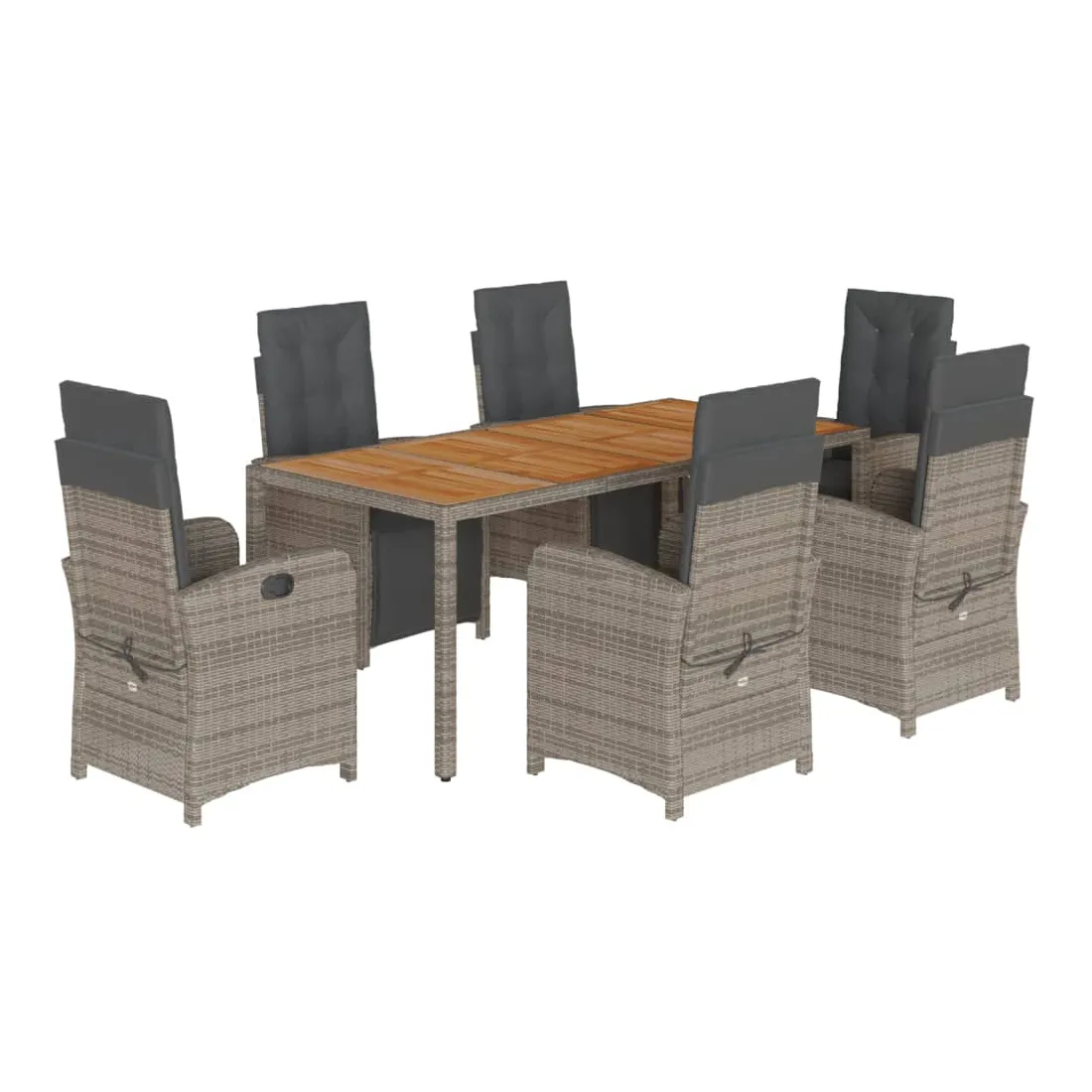Savourez une tasse de café ou discutez avec votre famille et vos amis dans le jardin, l'arrière-cour ou sur le balcon avec cet ensemble de salle à manger de jardin confortable ! Matériau durable : la résine tressée, également connue sous le nom de poly rotin, est un matériau synthétique solide et nécessitant peu d'entretien qui ressemble au rotin naturel. Il est léger, facile à nettoyer et couramment utilisé pour les meubles d'extérieur en raison de sa durabilité et de ses propriétés de résistance aux intempéries.Dossier et repose-pied réglables : ce siège de jardin est doté d'une poignée. Vous pouvez régler le dossier et le repose-pied dans n'importe quelle position en tirant sur la poignée, et les remettre rapidement dans leur position initiale.Expérience d'assise confortable : ce mobilier d'extérieur, doté de coussins épais, offre une expérience d'assise confortable.Housse amovible et lavable : ces coussins de siège sont dotés de housses amovibles pour un lavage et un entretien faciles. Les coussins de dossier ont un rabat à l'arrière pour une fixation facile aux dossiers. Dessus stable et facile à nettoyer : cette table de jardin a un dessus en bois d'acacia robuste, durable et facile à nettoyer avec un chiffon humide. Bon à savoir :Pour que vos meubles d'extérieur restent beaux, nous vous recommandons de les protéger avec une housse imperméable.