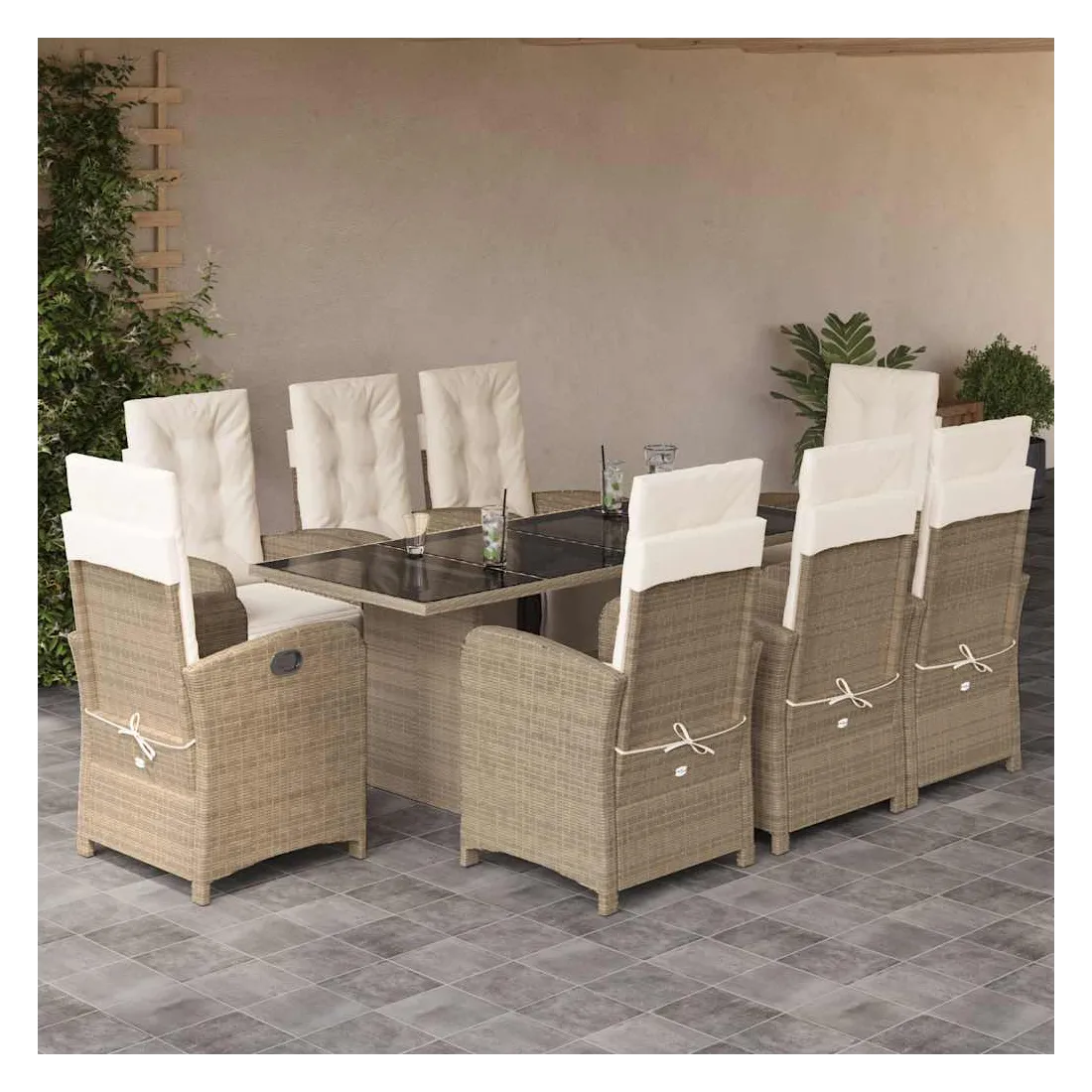 Ensemble à manger de jardin et coussins 9 pcs beige Poly rotin
