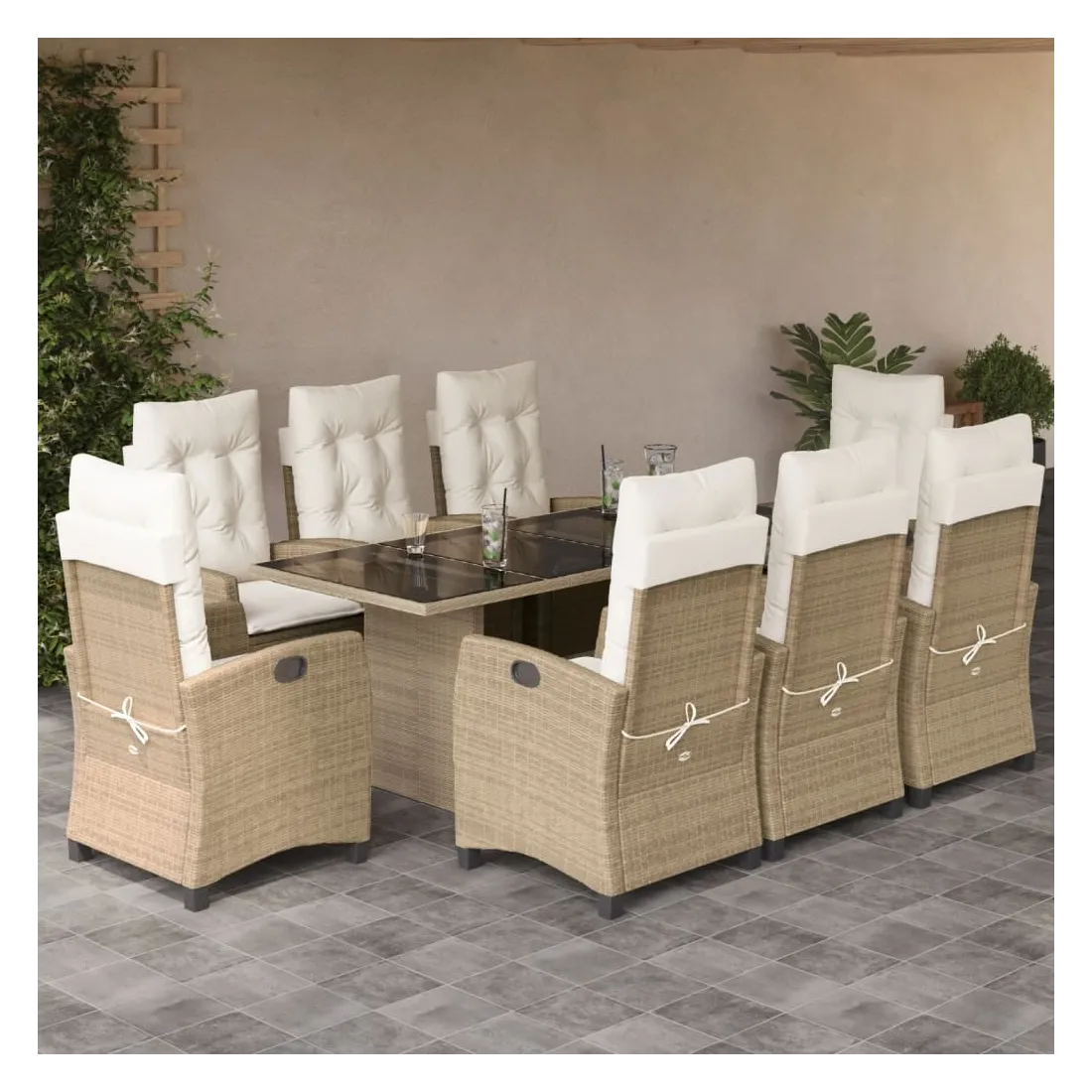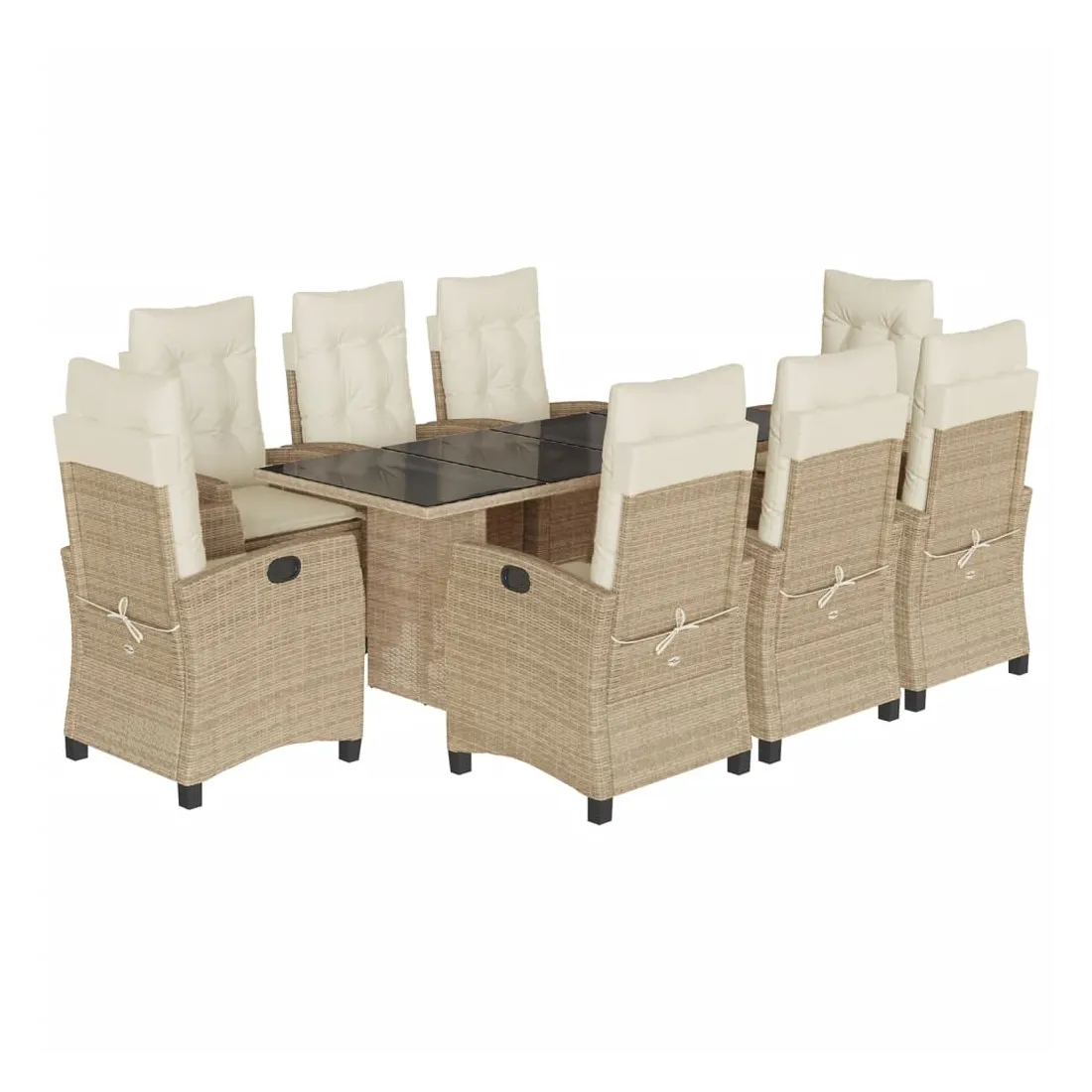Ensemble à manger de jardin et coussins 9 pcs beige Poly rotin