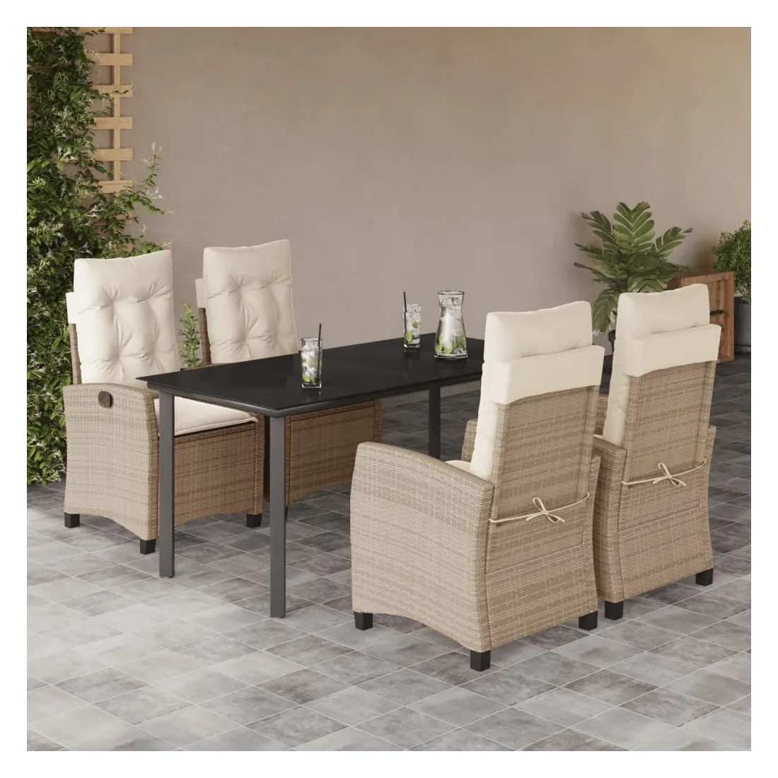 vidaXLCet ensemble de salle à manger de jardin est un excellent choix pour les repas en plein air ou pour vous détendre dans le jardin, l'arrière-cour ou le patio. Matériau durable : la résine tressée, également connue sous le nom de poly rotin, est un matériau synthétique solide et nécessitant peu d'entretien qui ressemble au rotin naturel. Il est léger, facile à nettoyer et couramment utilisé pour les meubles d'extérieur en raison de sa durabilité et de ses propriétés de résistance aux intempéries. Dossier réglable : ce siège de jardin est doté d'une poignée. Vous pouvez régler le dossier dans n'importe quelle position en tirant sur la poignée et le remettre rapidement dans sa position initiale.Dessus en verre : le dessus de la table d'extérieur est fabriqué en verre trempé solide et durable, ce qui le rend facile à nettoyer avec un chiffon humide et ajoute une touche d'élégance à votre espace extérieur. Expérience d'assise confortable : ce mobilier d'extérieur, doté de coussins épais, offre une expérience d'assise confortable. Housse amovible et lavable : ces coussins de siège sont dotés de housses amovibles pour un lavage et un entretien faciles. Bon à savoir :Pour que vos meubles d'extérieur restent beaux, nous vous recommandons de les protéger avec une housse imperméable.