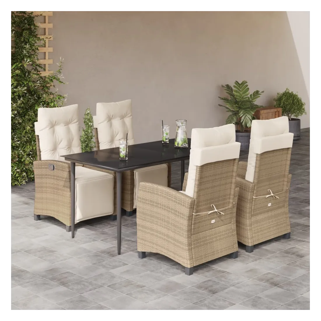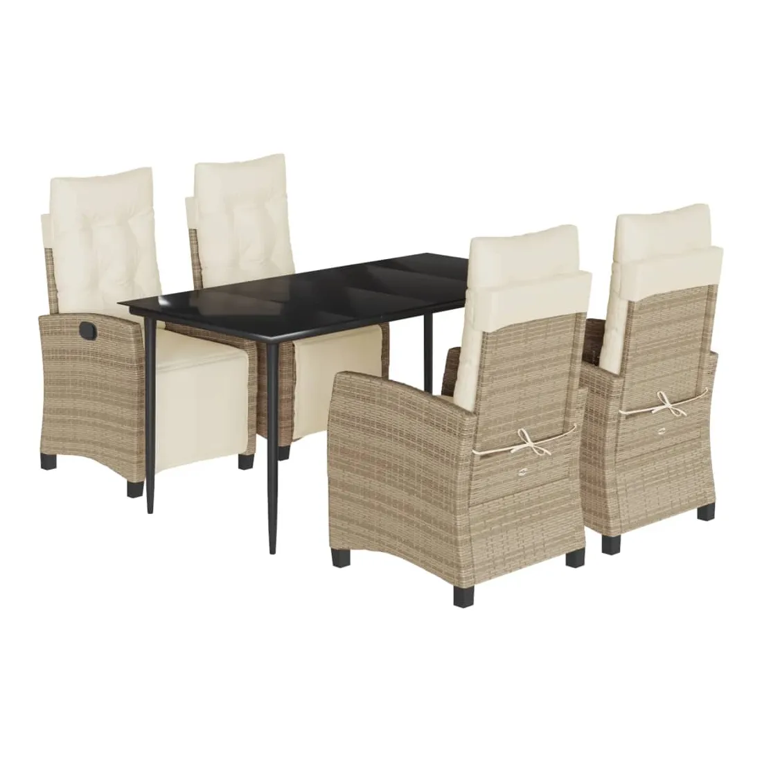 Ensemble à manger de jardin avec coussins 5pcs Beige poly rotin