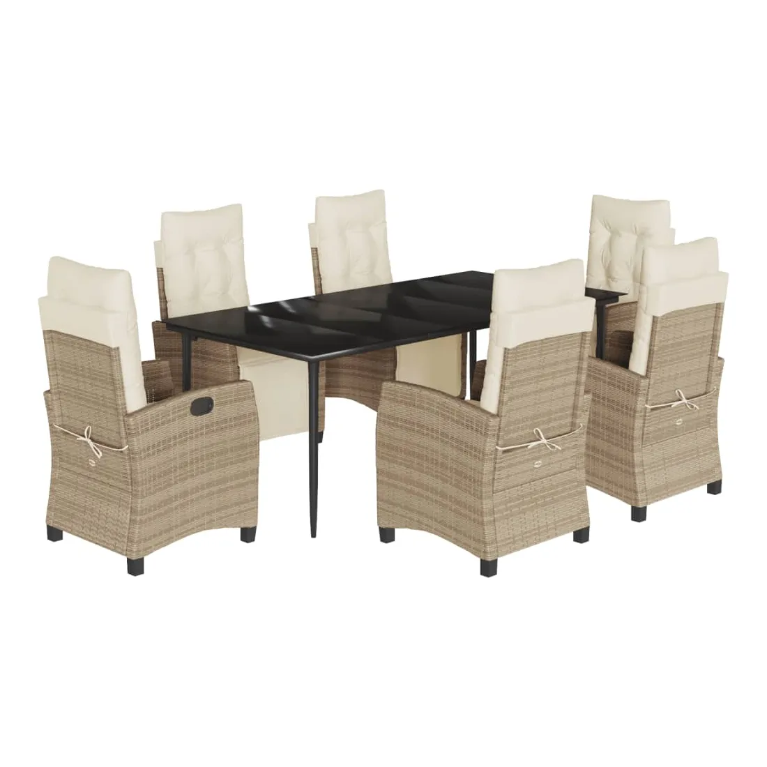 Ensemble à manger de jardin et coussins 7 pcs beige poly rotin