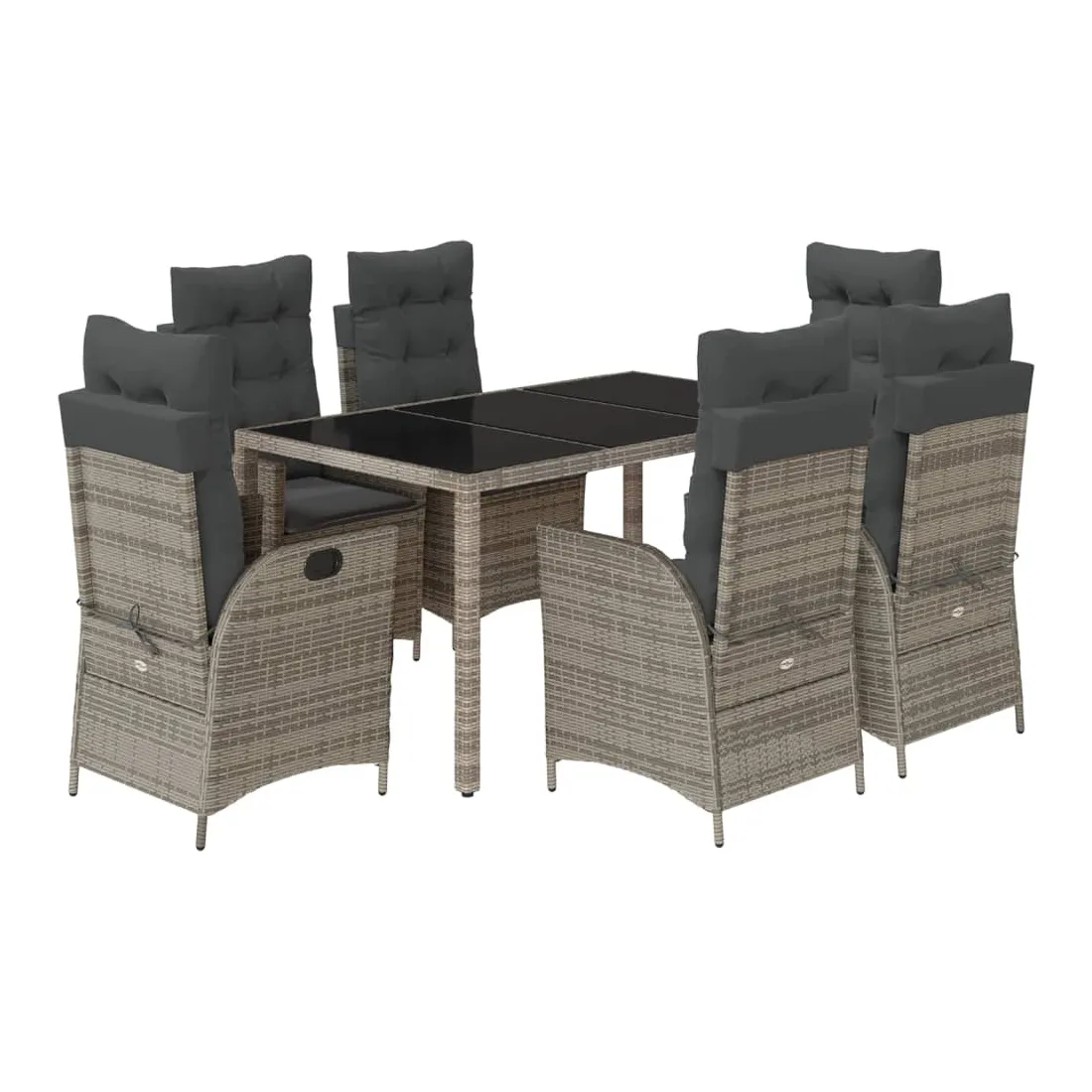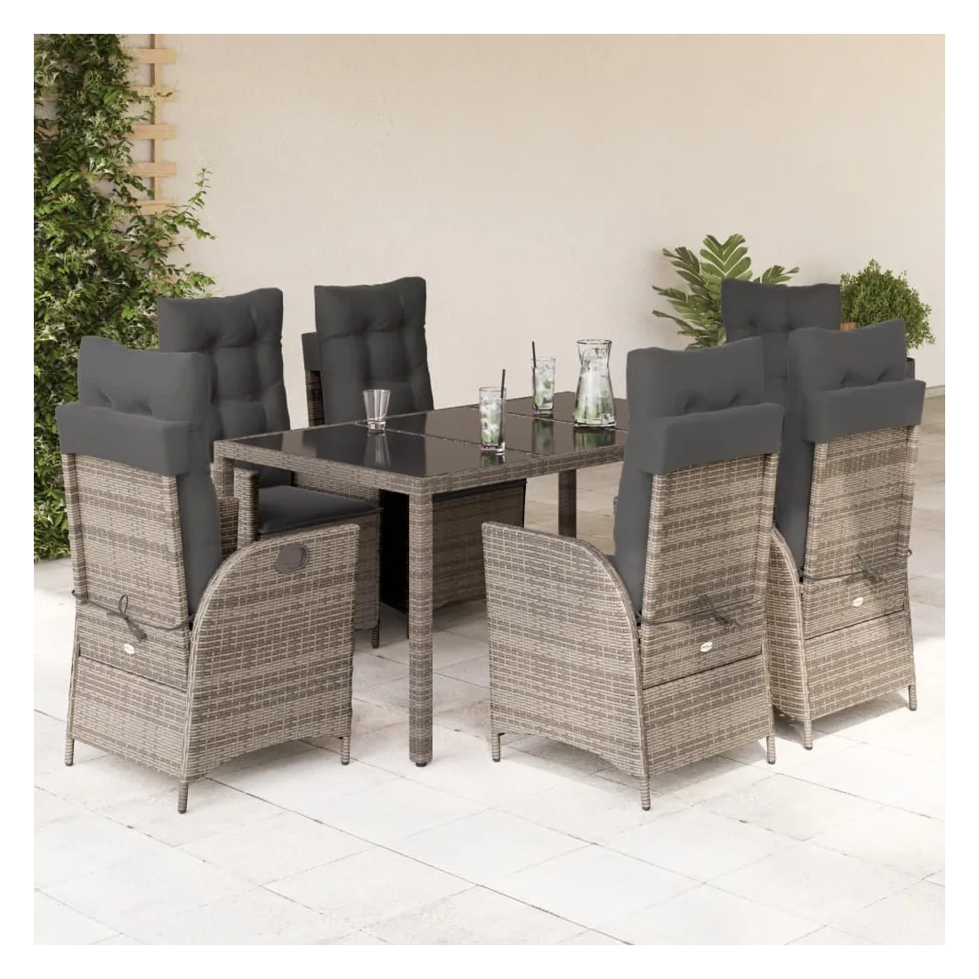 Cet ensemble de salle à manger de jardin est un excellent choix pour les repas en plein air ou pour vous détendre dans le jardin, dans l'arrière-cour ou sur la terrasse. Matériau durable : la résine tressée, également connue sous le nom de poly rotin, est un matériau synthétique solide et nécessitant peu d'entretien qui ressemble au rotin naturel. Il est léger, facile à nettoyer et couramment utilisé pour les meubles d'extérieur en raison de sa durabilité et de ses propriétés de résistance aux intempéries.Dossier réglable : ce siège de jardin est doté d'une poignée. Vous pouvez régler le dossier dans n'importe quelle position en tirant sur la poignée et le remettre rapidement dans sa position initiale.Expérience d'assise confortable : ce mobilier d'extérieur, doté de coussins épais, offre une expérience d'assise confortable.Housse amovible et lavable : ces coussins de siège sont dotés de housses amovibles pour un lavage et un entretien faciles. Les coussins de dossier ont un rabat à l'arrière pour une fixation facile aux dossiers.Dessus en verre : le dessus de la table d'extérieur est fabriqué en verre trempé solide et durable, ce qui le rend facile à nettoyer avec un chiffon humide et ajoute une touche d'élégance à votre espace extérieur. Bon à savoir : Pour que vos meubles d'extérieur restent beaux, nous vous recommandons de les protéger avec une housse imperméable.