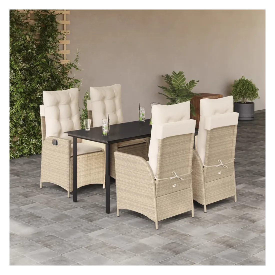 Ensemble à manger de jardin avec coussins 5pcs Beige poly rotin