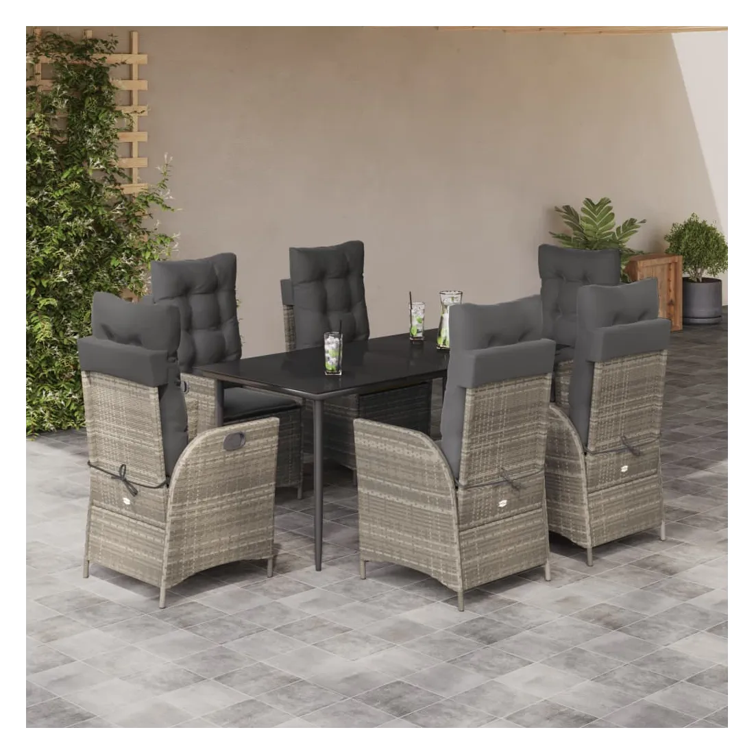 Ensemble à manger de jardin et coussins 7 pcs gris clair rotin