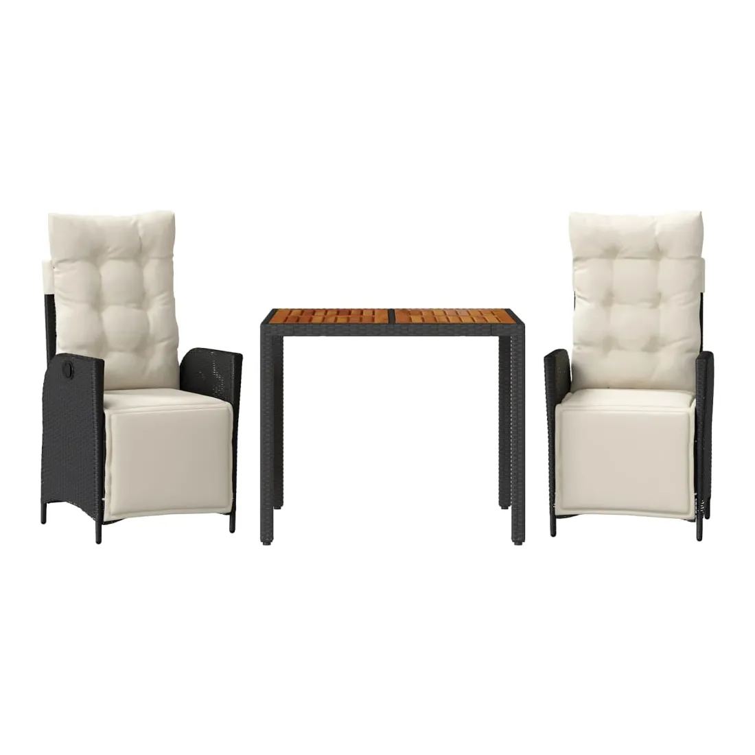 Cet ensemble de salle à manger de jardin est un excellent choix pour les repas en plein air ou pour vous détendre dans le jardin, l'arrière-cour ou le patio. Matériau durable : la résine tressée, également connue sous le nom de poly rotin, est un matériau synthétique solide et nécessitant peu d'entretien qui ressemble au rotin naturel. Il est léger, facile à nettoyer et couramment utilisé pour les meubles d'extérieur en raison de sa durabilité et de ses propriétés de résistance aux intempéries.Dossier et repose-pied réglables : ce siège de jardin est doté d'une poignée. Vous pouvez régler le dossier et le repose-pied dans n'importe quelle position en tirant sur la poignée, et les remettre rapidement dans leur position initiale.Expérience d'assise confortable : ce mobilier d'extérieur, doté de coussins épais, offre une expérience d'assise confortable.Housse amovible et lavable : ces coussins de siège sont dotés de housses amovibles pour un lavage et un entretien faciles. Les coussins de dossier ont un rabat à l'arrière pour une fixation facile aux dossiers.Dessus stable et facile à nettoyer : cette table de jardin a un dessus en bois d'acacia robuste, durable et facile à nettoyer avec un chiffon humide. Bon à savoir :Pour que vos meubles d'extérieur restent beaux, nous vous recommandons de les protéger avec une housse imperméable.