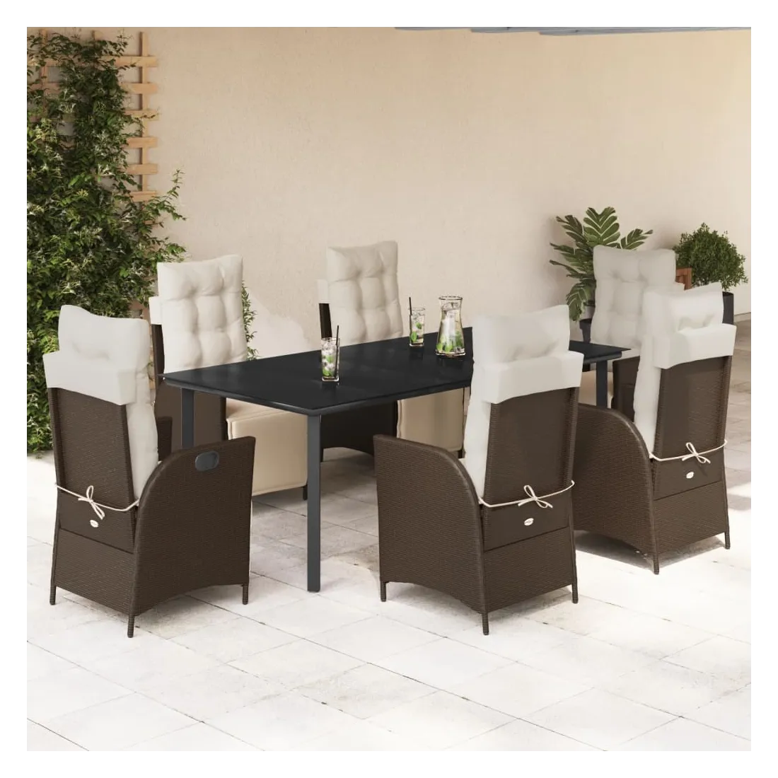 Cet ensemble de salle à manger de jardin est un excellent choix pour les repas en plein air ou pour vous détendre dans le jardin, l'arrière-cour ou le patio. Matériau durable : la résine tressée, également connue sous le nom de poly rotin, est un matériau synthétique solide et nécessitant peu d'entretien qui ressemble au rotin naturel. Il est léger, facile à nettoyer et couramment utilisé pour les meubles d'extérieur en raison de sa durabilité et de ses propriétés de résistance aux intempéries.Dossier et repose-pied réglables : ce siège de jardin est doté d'une poignée. Vous pouvez régler le dossier et le repose-pied dans n'importe quelle position en tirant sur la poignée, et les remettre rapidement dans leur position initiale.Expérience d'assise confortable : ce mobilier d'extérieur, doté de coussins épais, offre une expérience d'assise confortable.Housse amovible et lavable : ces coussins de siège sont dotés de housses amovibles pour un lavage et un entretien faciles. Les coussins de dossier ont un rabat à l'arrière pour une fixation facile aux dossiers.Dessus en verre : le dessus de la table d'extérieur est fabriqué en verre trempé solide et durable, ce qui le rend facile à nettoyer avec un chiffon humide et ajoute une touche d'élégance à votre espace extérieur. Bon à savoir :Pour que vos meubles d'extérieur restent beaux, nous vous recommandons de les protéger avec une housse imperméable.