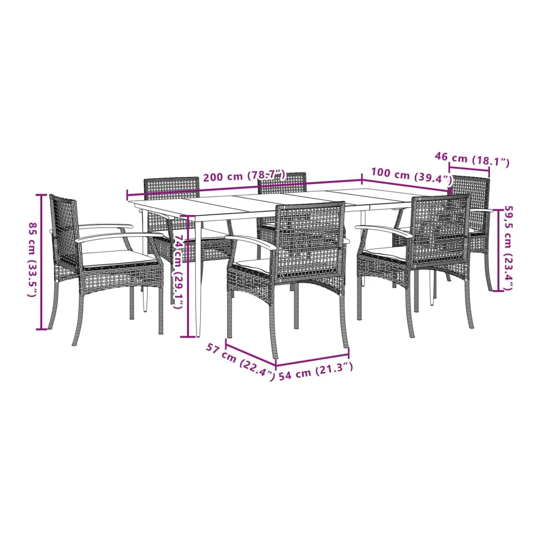 - 200 x 100 x 74 cm