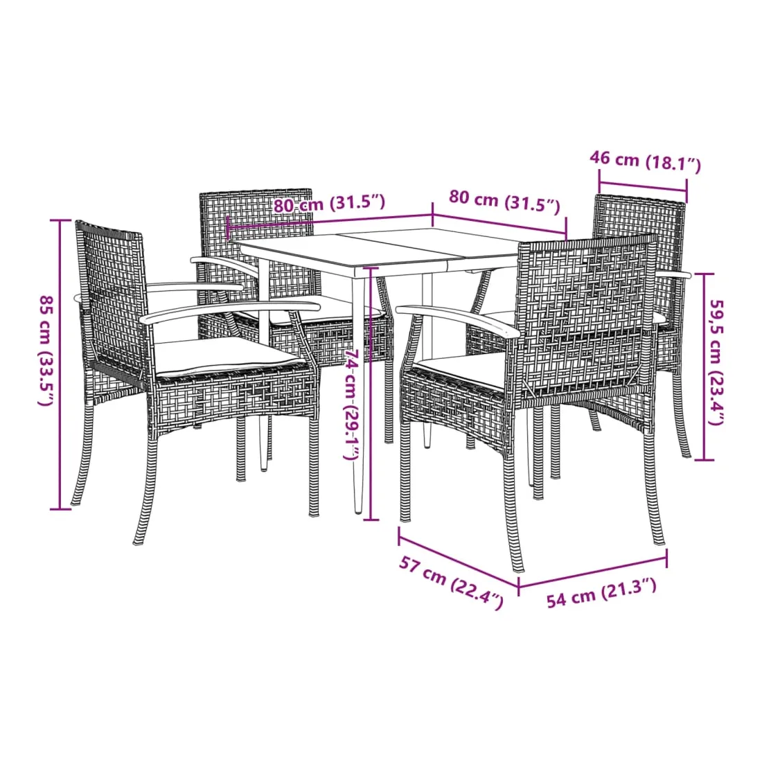 - Dimensions : 80 x 80 x 74 cm (L x l x H)