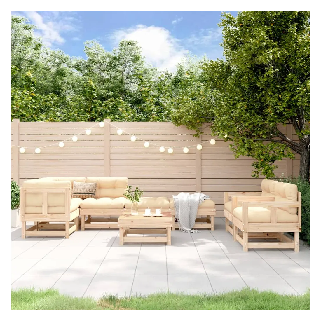 Ce salon de jardin en bois, qui se démarque par son design à lattes, sera un excellent supplément à votre jardin, patio ou terrasse pour profiter d'un moment agréable avec votre famille ou vos amis. Bois de pin massif : le bois de pin massif est un matériau naturel magnifique. Le bois de pin a un grain droit et les nœuds donnent au matériau son aspect caractéristique et rustique.Cadre robuste et stable : les cadres en bois rendent l'ensemble de salon robuste et stable pour une utilisation quotidienne à l'extérieur.Design modulaire : le canapé est flexible et facile à déplacer. Vous pouvez le combiner avec d'autres segments modulaires de la boutique en ligne pour créer vos propres configurations de salon de jardin ! Bon à savoir :Pour que vos meubles d'extérieur restent beaux, nous vous recommandons de les protéger avec une housse imperméable.Les coussins ne sont pas inclus dans la livraison.