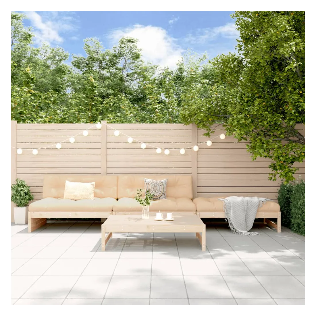 Ce salon de jardin en bois, qui se démarque par son design à lattes, sera un excellent supplément à votre jardin, patio ou terrasse pour profiter d'un moment agréable avec votre famille ou vos amis. Bois de pin massif : le bois de pin massif est un matériau naturel magnifique. Le bois de pin a un grain droit et les nœuds donnent au matériau son aspect caractéristique et rustique.Cadre robuste et stable : le cadre en bois rend l'ensemble de salon robuste et stable pour une utilisation quotidienne à l'extérieur.Expérience d'assise confortable : le dossier ajoute un confort d'assise supplémentaire au canapé d'extérieur.Design modulaire : le canapé est flexible et facile à déplacer. Vous pouvez le combiner avec d'autres segments modulaires de la boutique en ligne pour créer vos propres configurations de salon de jardin ! Bon à savoir :Les coussins ne sont pas inclus dans la livraison.Pour que vos meubles d'extérieur restent beaux, nous vous recommandons de les protéger avec une housse imperméable.