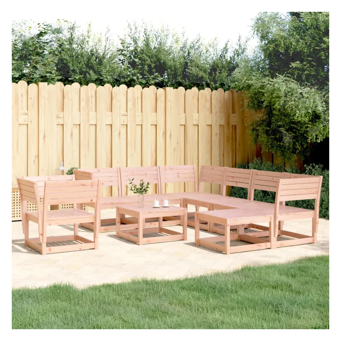 Cet ensemble de salon de jardin en bois a un design élégant et constitue un excellent choix pour vous détendre et profiter du jardin ou du patio. Bois de douglas massif : le bois de douglas massif est un bois très durable qui fonctionne bien pour l'extérieur. Le bois de douglas est également suffisamment solide pour être travaillé avec un minimum de soin, même sous l'influence des intempéries. Design à lattes : le design à lattes du meuble en bois empêche l'accumulation de l'eau, ce qui permet de garder le siège au sec et empêchant la pourriture indésirable. Expérience d'assise confortable : le dossier et l'accoudoir ajoutent un confort d'assise supplémentaire à l'ensemble de mobilier de jardin. Conception modulaire : cet ensemble de meubles d'extérieur a une conception modulaire, ce qui le rend complètement flexible et facile à déplacer, afin que vous puissiez créer un agencement de meubles d'extérieur personnalisé. Bon à savoir :Pour que vos meubles d'extérieur restent beaux, nous vous recommandons de les protéger avec une housse imperméable.