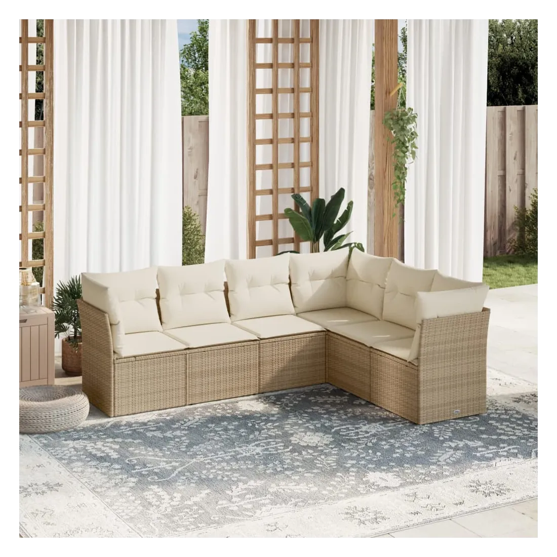 Cet ensemble de canapés de jardin est le complément parfait de votre arrière-cour, terrasse ou patio, offrant un espace confortable et accueillant pour discuter avec la famille et les amis ou simplement se détendre et profiter de l'extérieur. Matériau durable : la résine tressée, également connue sous le nom de poly rotin, est un matériau synthétique solide et nécessitant peu d'entretien qui ressemble au rotin naturel. Il est léger, facile à nettoyer et couramment utilisé pour les meubles d'extérieur en raison de sa durabilité et de ses propriétés de résistance aux intempéries.Expérience d'assise confortable : ce mobilier d'extérieur, doté de coussins épais, offre une expérience d'assise confortable.Housse amovible et lavable : ces coussins de siège sont dotés de housses amovibles pour un lavage et un entretien faciles.Conception modulaire : cet ensemble de meubles d'extérieur a une conception modulaire, ce qui le rend complètement flexible et facile à déplacer, afin que vous puissiez créer un agencement de meubles d'extérieur personnalisé. Bon à savoir :Pour que vos meubles d'extérieur restent beaux, nous vous recommandons de les protéger avec une housse imperméable.