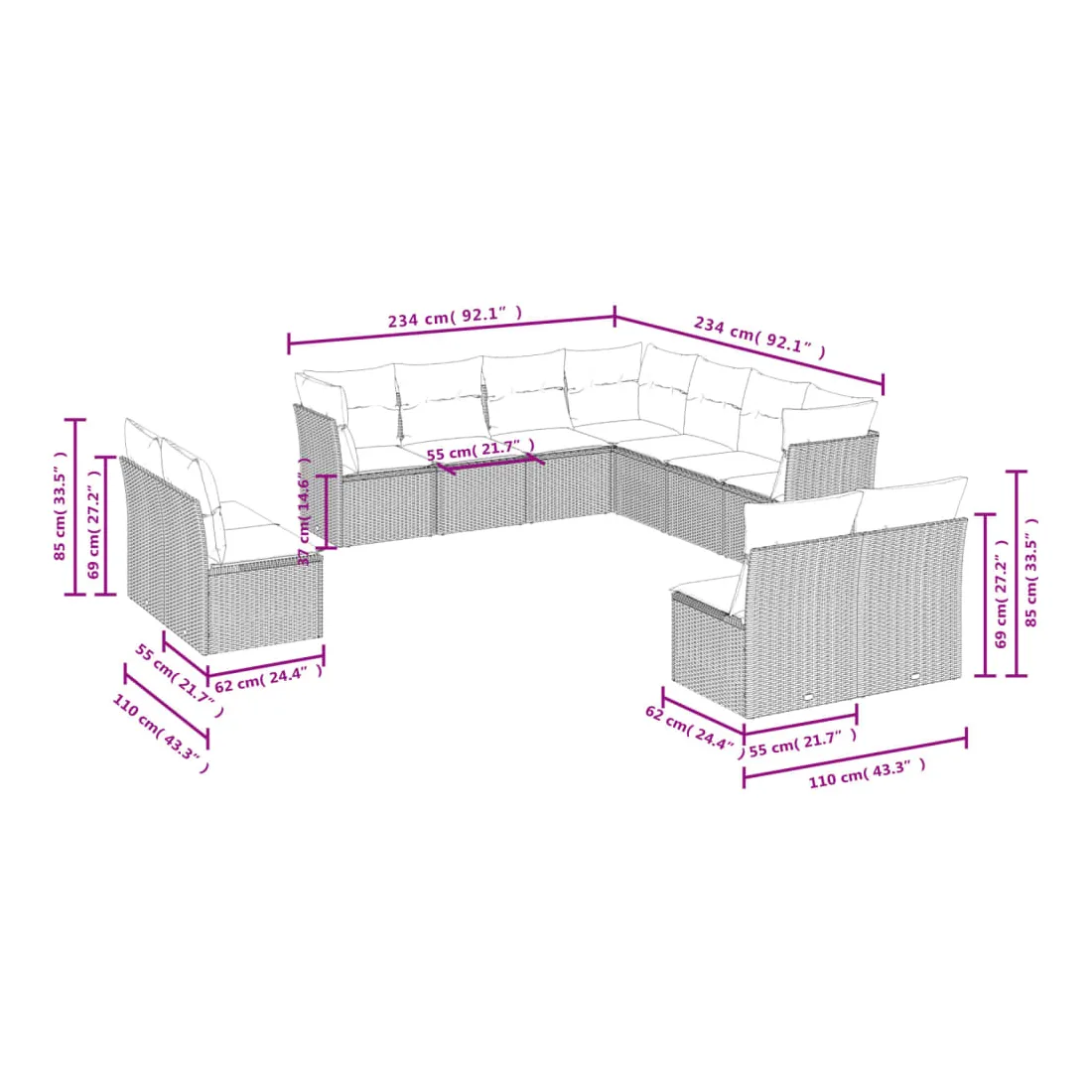 Cet ensemble de canapés de jardin est le complément parfait de votre arrière-cour, terrasse ou patio, offrant un espace confortable et accueillant pour discuter avec la famille et les amis ou simplement se détendre et profiter de l'extérieur. Matériau durable : la résine tressée, également connue sous le nom de poly rotin, est un matériau synthétique solide et nécessitant peu d'entretien qui ressemble au rotin naturel. Il est léger, facile à nettoyer et couramment utilisé pour les meubles d'extérieur en raison de sa durabilité et de ses propriétés de résistance aux intempéries.Expérience d'assise confortable : ce mobilier d'extérieur, doté de coussins épais, offre une expérience d'assise confortable.Housse amovible et lavable : ces coussins de siège sont dotés de housses amovibles pour un lavage et un entretien faciles.Conception modulaire : cet ensemble de meubles d'extérieur a une conception modulaire, ce qui le rend complètement flexible et facile à déplacer, afin que vous puissiez créer un agencement de meubles d'extérieur personnalisé. Bon à savoir :Pour que vos meubles d'extérieur restent beaux, nous vous recommandons de les protéger avec une housse imperméable.