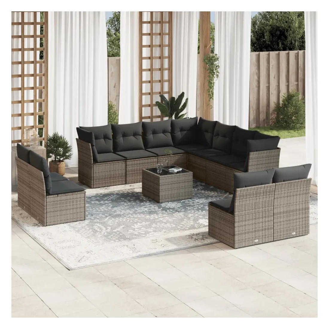 Cet ensemble de canapés de jardin est le complément parfait de votre arrière-cour, terrasse ou patio, offrant un espace confortable et accueillant pour discuter avec la famille et les amis ou simplement se détendre et profiter de l'extérieur. Matériau durable : la résine tressée, également connue sous le nom de poly rotin, est un matériau synthétique solide et nécessitant peu d'entretien qui ressemble au rotin naturel. Il est léger, facile à nettoyer et couramment utilisé pour les meubles d'extérieur en raison de sa durabilité et de ses propriétés de résistance aux intempéries.Expérience d'assise confortable : ce mobilier d'extérieur, doté de coussins épais, offre une expérience d'assise confortable.Dessus en verre : le dessus de la table d'extérieur est fabriqué en verre trempé solide et durable, ce qui le rend facile à nettoyer avec un chiffon humide et ajoute une touche d'élégance à votre espace extérieur.Housse amovible et lavable : ces coussins de siège sont dotés de housses amovibles pour un lavage et un entretien faciles.Conception modulaire : cet ensemble de meubles d'extérieur a une conception modulaire, ce qui le rend complètement flexible et facile à déplacer, afin que vous puissiez créer un agencement de meubles d'extérieur personnalisé. Bon à savoir :Pour que vos meubles d'extérieur restent beaux, nous vous recommandons de les protéger avec une housse imperméable.