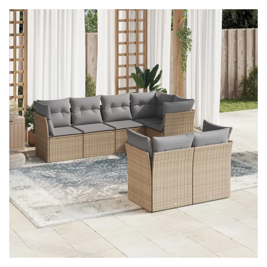 Cet ensemble de canapés de jardin est le complément parfait de votre arrière-cour, terrasse ou patio, offrant un espace confortable et accueillant pour discuter avec la famille et les amis ou simplement se détendre et profiter de l'extérieur. Matériau durable : la résine tressée, également connue sous le nom de poly rotin, est un matériau synthétique solide et nécessitant peu d'entretien qui ressemble au rotin naturel. Il est léger, facile à nettoyer et couramment utilisé pour les meubles d'extérieur en raison de sa durabilité et de ses propriétés de résistance aux intempéries.Expérience d'assise confortable : ce mobilier d'extérieur, doté de coussins épais, offre une expérience d'assise confortable.Housse amovible et lavable : ces coussins de siège sont dotés de housses amovibles pour un lavage et un entretien faciles.Conception modulaire : cet ensemble de meubles d'extérieur a une conception modulaire, ce qui le rend complètement flexible et facile à déplacer, afin que vous puissiez créer un agencement de meubles d'extérieur personnalisé. Bon à savoir :Pour que vos meubles d'extérieur restent beaux, nous vous recommandons de les protéger avec une housse imperméable.