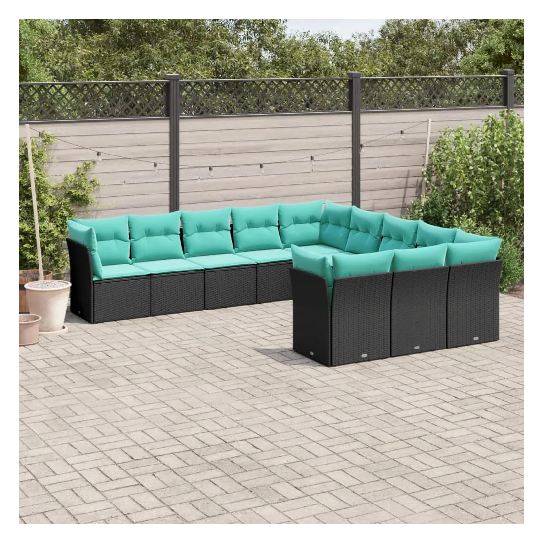 Cet ensemble de canapés de jardin est le complément parfait de votre arrière-cour, terrasse ou patio, offrant un espace confortable et accueillant pour discuter avec la famille et les amis ou simplement se détendre et profiter de l'extérieur. Matériau durable : la résine tressée, également connue sous le nom de poly rotin, est un matériau synthétique solide et nécessitant peu d'entretien qui ressemble au rotin naturel. Elle est légère, facile à nettoyer et couramment utilisée pour les meubles d'extérieur en raison de sa durabilité et de ses propriétés de résistance aux intempéries.Expérience d'assise confortable : ce mobilier d'extérieur, doté de coussins épais, offre une expérience d'assise confortable.Housse amovible et lavable : ces coussins de siège sont dotés de housses amovibles pour un lavage et un entretien faciles.Conception modulaire : cet ensemble de meubles d'extérieur a une conception modulaire, ce qui le rend complètement flexible et facile à déplacer, afin que vous puissiez créer un agencement de meubles d'extérieur personnalisé. Bon à savoir :Pour que vos meubles d'extérieur restent beaux, nous vous recommandons de les protéger avec une housse imperméable.