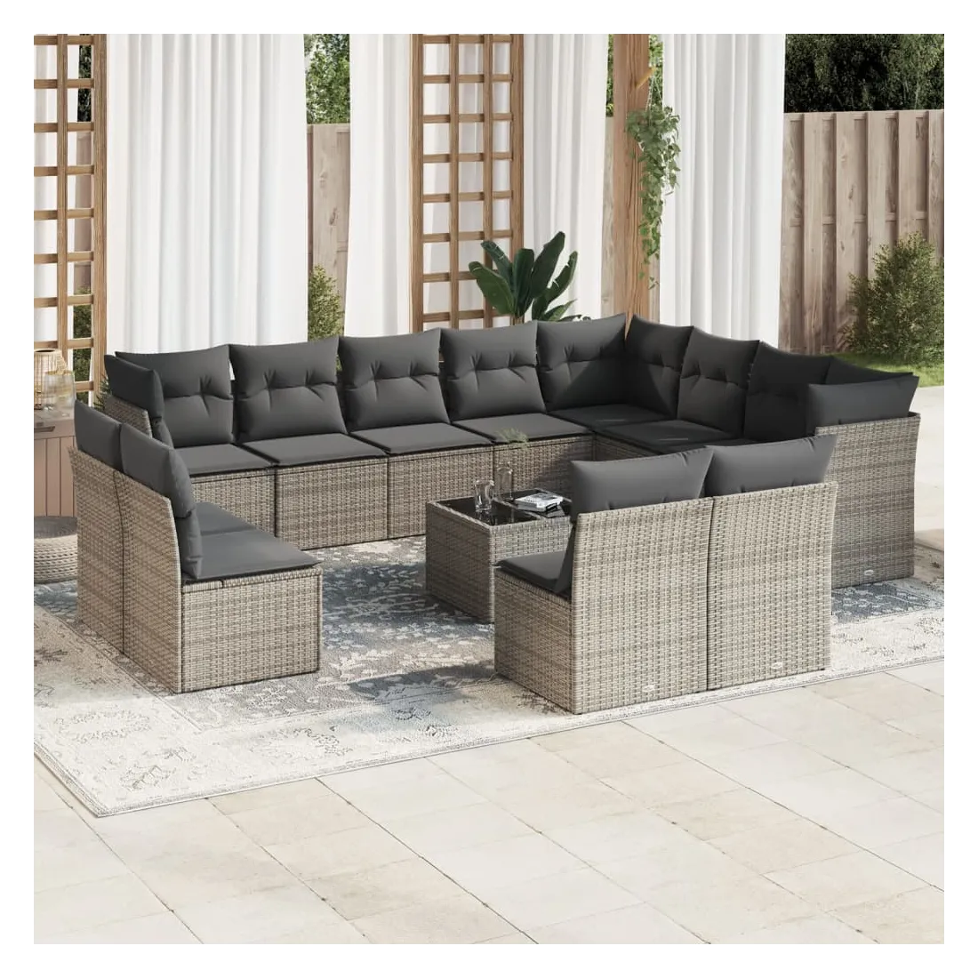 Cet ensemble de canapés de jardin est le complément parfait de votre arrière-cour, terrasse ou patio, offrant un espace confortable et accueillant pour discuter avec la famille et les amis ou simplement se détendre et profiter de l'extérieur. Matériau durable : la résine tressée, également connue sous le nom de poly rotin, est un matériau synthétique solide et nécessitant peu d'entretien qui ressemble au rotin naturel. Il est léger, facile à nettoyer et couramment utilisé pour les meubles d'extérieur en raison de sa durabilité et de ses propriétés de résistance aux intempéries.Expérience d'assise confortable : ce mobilier d'extérieur, doté de coussins épais, offre une expérience d'assise confortable.Dessus en verre : le dessus de la table d'extérieur est fabriqué en verre trempé solide et durable, ce qui le rend facile à nettoyer avec un chiffon humide et ajoute une touche d'élégance à votre espace extérieur.Housse amovible et lavable : ces coussins de siège sont dotés de housses amovibles pour un lavage et un entretien faciles.Conception modulaire : cet ensemble de meubles d'extérieur a une conception modulaire, ce qui le rend complètement flexible et facile à déplacer, afin que vous puissiez créer un agencement de meubles d'extérieur personnalisé. Bon à savoir :Pour que vos meubles d'extérieur restent beaux, nous vous recommandons de les protéger avec une housse imperméable.