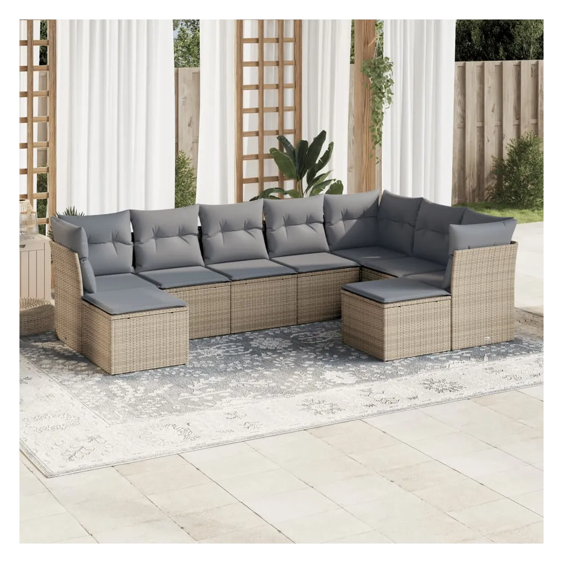 Cet ensemble de canapés de jardin est le complément parfait de votre arrière-cour, terrasse ou patio, offrant un espace confortable et accueillant pour discuter avec la famille et les amis ou simplement se détendre et profiter de l'extérieur. Matériau durable : la résine tressée, également connue sous le nom de poly rotin, est un matériau synthétique solide et nécessitant peu d'entretien qui ressemble au rotin naturel. Il est léger, facile à nettoyer et couramment utilisé pour les meubles d'extérieur en raison de sa durabilité et de ses propriétés de résistance aux intempéries.Expérience d'assise confortable : ce mobilier d'extérieur, doté de coussins épais, offre une expérience d'assise confortable.Housse amovible et lavable : ces coussins de siège sont dotés de housses amovibles pour un lavage et un entretien faciles.Conception modulaire : cet ensemble de meubles d'extérieur a une conception modulaire, ce qui le rend complètement flexible et facile à déplacer, afin que vous puissiez créer un agencement de meubles d'extérieur personnalisé. Bon à savoir :Pour que vos meubles d'extérieur restent beaux, nous vous recommandons de les protéger avec une housse imperméable.