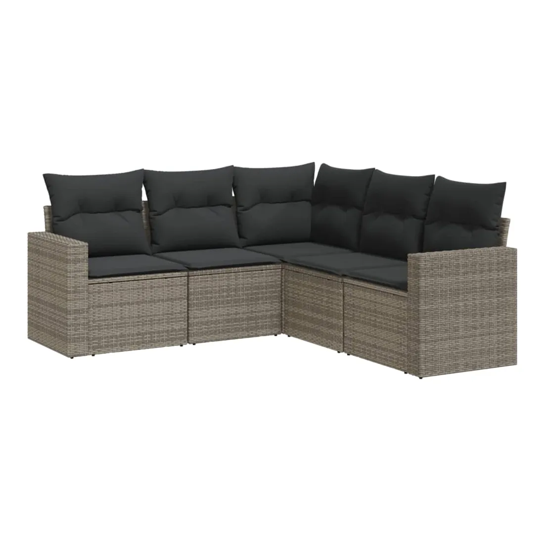 Salon de jardin 5 pcs avec coussins gris résine tressée