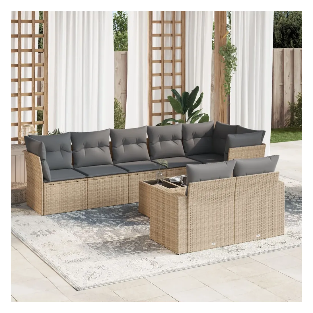 Cet ensemble de canapés de jardin est le complément parfait de votre arrière-cour, terrasse ou patio, offrant un espace confortable et accueillant pour discuter avec la famille et les amis ou simplement se détendre et profiter de l'extérieur. Matériau durable : la résine tressée, également connue sous le nom de poly rotin, est un matériau synthétique solide et nécessitant peu d'entretien qui ressemble au rotin naturel. Il est léger, facile à nettoyer et couramment utilisé pour les meubles d'extérieur en raison de sa durabilité et de ses propriétés de résistance aux intempéries.Expérience d'assise confortable : ce mobilier d'extérieur, doté de coussins épais, offre une expérience d'assise confortable. Les larges accoudoirs offrent également un endroit pratique pour garder votre téléphone portable, vos tasses ou d'autres petits objets à portée de main.Housse amovible et lavable : ces coussins de siège sont dotés de housses amovibles pour un lavage et un entretien faciles.Dessus en verre : le dessus de la table d'extérieur est fabriqué en verre trempé solide et durable, ce qui le rend facile à nettoyer avec un chiffon humide et ajoute une touche d'élégance à votre espace extérieur.Conception modulaire : cet ensemble de meubles d'extérieur a une conception modulaire, ce qui le rend complètement flexible et facile à déplacer, afin que vous puissiez créer un agencement de meubles d'extérieur personnalisé. Bon à savoir :Pour que vos meubles d'extérieur restent beaux, nous vous recommandons de les protéger avec une housse imperméable.