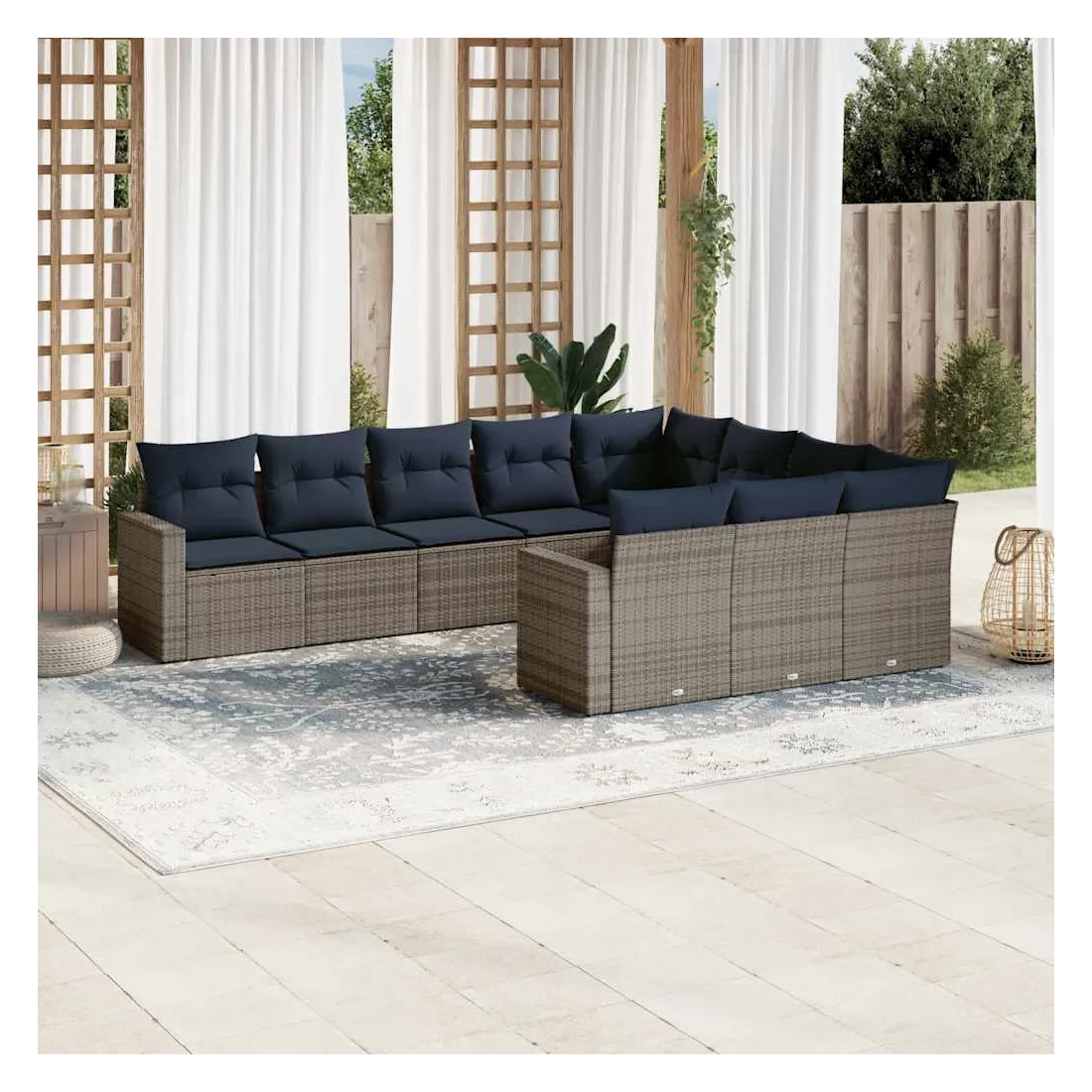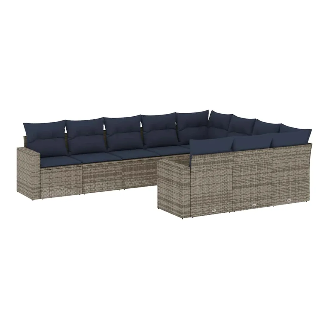 Salon de jardin 10 pcs avec coussins gris résine tressée