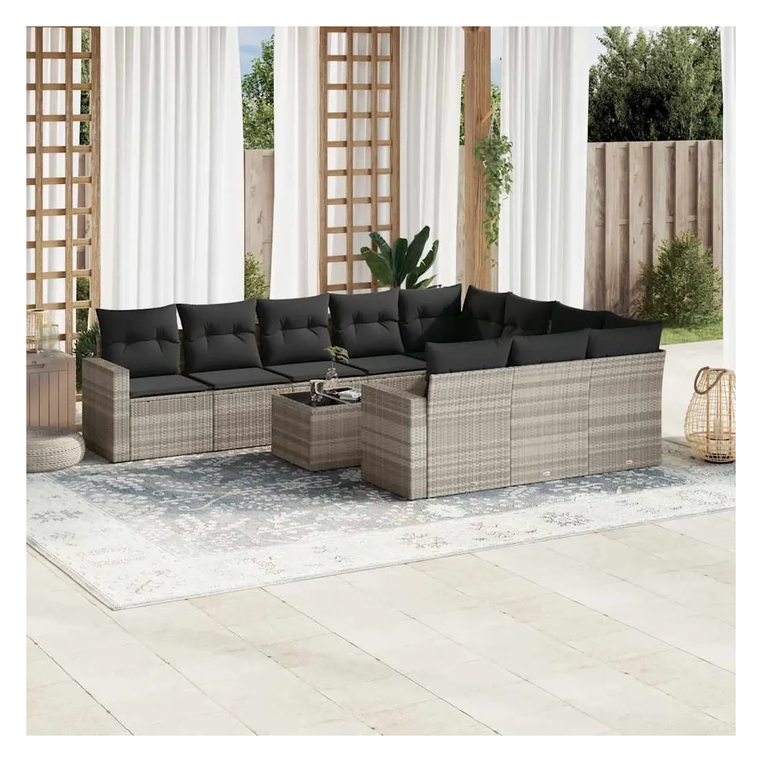 Salon de jardin 11 pcs avec coussins gris clair résine tressée