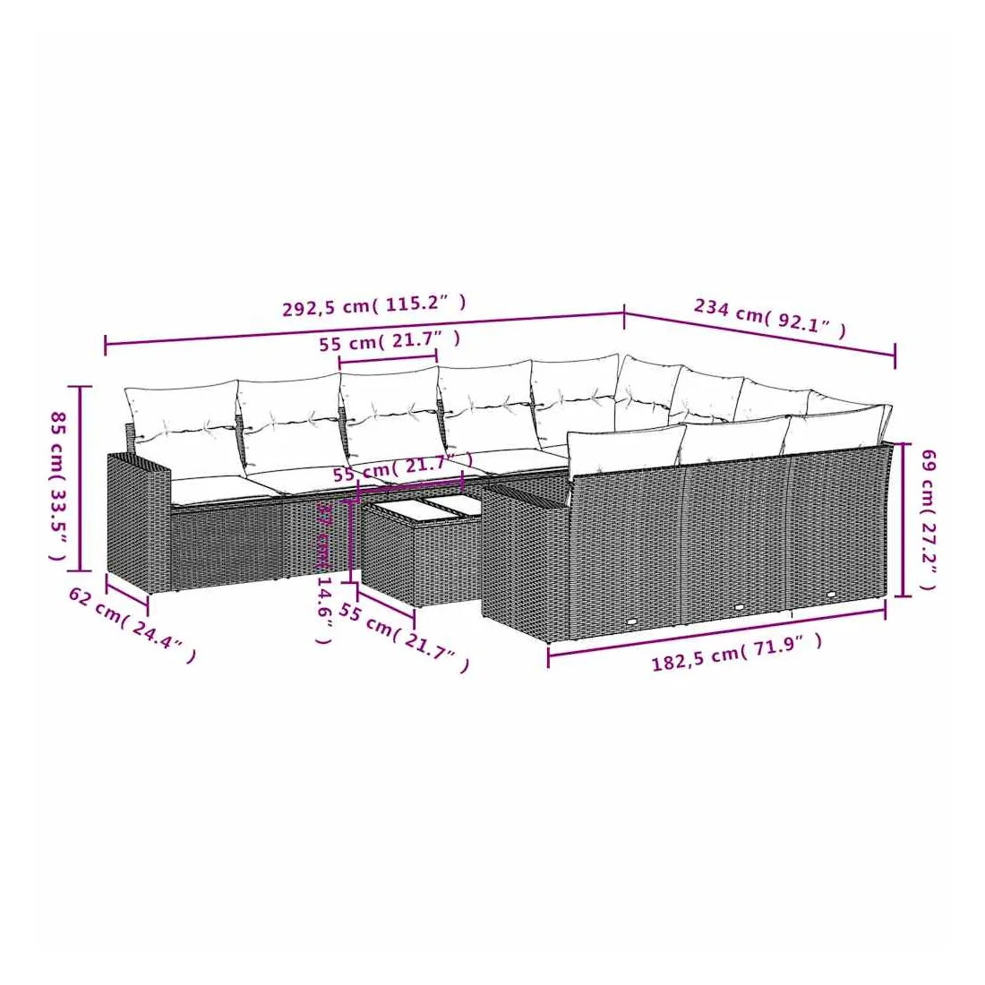 vidaXLCet ensemble de canapés de jardin est le complément parfait de votre arrière-cour, terrasse ou patio, offrant un espace confortable et accueillant pour discuter avec la famille et les amis ou simplement se détendre et profiter de l'extérieur. Matériau durable : la résine tressée, également connue sous le nom de poly rotin, est un matériau synthétique solide et nécessitant peu d'entretien qui ressemble au rotin naturel. Il est léger, facile à nettoyer et couramment utilisé pour les meubles d'extérieur en raison de sa durabilité et de ses propriétés de résistance aux intempéries.Expérience d'assise confortable : ce mobilier d'extérieur, doté de coussins épais, offre une expérience d'assise confortable.Housse amovible et lavable : ces coussins de siège sont dotés de housses amovibles pour un lavage et un entretien faciles.Dessus en verre : le dessus de la table d'extérieur est fabriqué en verre trempé solide et durable, ce qui le rend facile à nettoyer avec un chiffon humide et ajoute une touche d'élégance à votre espace extérieur.Conception modulaire : cet ensemble de meubles d'extérieur a une conception modulaire, ce qui le rend complètement flexible et facile à déplacer, afin que vous puissiez créer un agencement de meubles d'extérieur personnalisé. Bon à savoir :Pour que vos meubles d'extérieur restent beaux, nous vous recommandons de les protéger avec une housse imperméable.