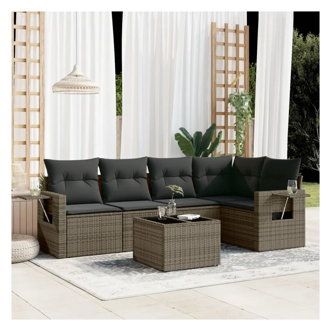 Cet ensemble de canapés de jardin est le complément parfait de votre arrière-cour, terrasse ou patio, offrant un espace confortable et accueillant pour discuter avec la famille et les amis ou simplement se détendre et profiter de l'extérieur. Matériau durable : la résine tressée, également connue sous le nom de poly rotin, est un matériau synthétique solide et nécessitant peu d'entretien qui ressemble au rotin naturel. Il est léger, facile à nettoyer et couramment utilisé pour les meubles d'extérieur en raison de sa durabilité et de ses propriétés de résistance aux intempéries.Dessus en verre : le dessus de la table d'extérieur est fabriqué en verre trempé solide et durable, ce qui le rend facile à nettoyer avec un chiffon humide et ajoute une touche d'élégance à votre espace extérieur. Table d'appoint pratique : ce mobilier d'extérieur comprend des tables d'appoint pliables avec un ressort à gaz sur les accoudoirs, offrant des endroits pratiques pour garder vos essentiels à portée de main. Expérience d'assise confortable : ce mobilier d'extérieur, doté de coussins épais, offre une expérience d'assise confortable.Conception modulaire : cet ensemble de meubles d'extérieur a une conception modulaire, ce qui le rend complètement flexible et facile à déplacer, afin que vous puissiez créer un agencement de meubles d'extérieur personnalisé. Bon à savoir :Pour que vos meubles d'extérieur restent beaux, nous vous recommandons de les protéger avec une housse imperméable.