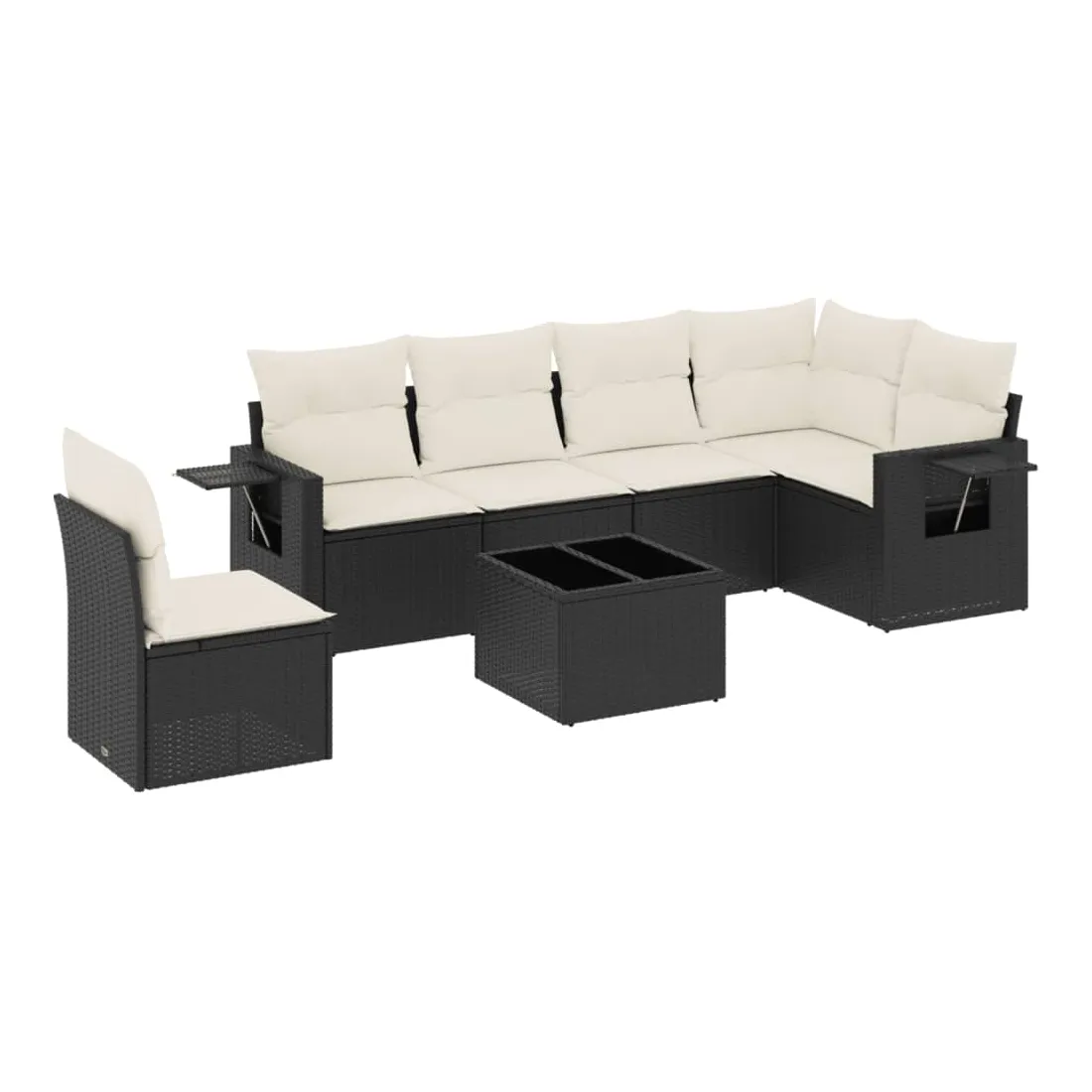 Cet ensemble de canapés de jardin est le complément parfait de votre arrière-cour, terrasse ou patio, offrant un espace confortable et accueillant pour discuter avec la famille et les amis ou simplement se détendre et profiter de l'extérieur. Matériau durable : la résine tressée, également connue sous le nom de poly rotin, est un matériau synthétique solide et nécessitant peu d'entretien qui ressemble au rotin naturel. Il est léger, facile à nettoyer et couramment utilisé pour les meubles d'extérieur en raison de sa durabilité et de ses propriétés de résistance aux intempéries.Dessus en verre : le dessus de la table d'extérieur est fabriqué en verre trempé solide et durable, ce qui le rend facile à nettoyer avec un chiffon humide et ajoute une touche d'élégance à votre espace extérieur. Table d'appoint pratique : ce mobilier d'extérieur comprend des tables d'appoint pliables avec un ressort à gaz sur les accoudoirs, offrant des endroits pratiques pour garder vos essentiels à portée de main. Expérience d'assise confortable : ce mobilier d'extérieur, doté de coussins épais, offre une expérience d'assise confortable.Conception modulaire : cet ensemble de meubles d'extérieur a une conception modulaire, ce qui le rend complètement flexible et facile à déplacer, afin que vous puissiez créer un agencement de meubles d'extérieur personnalisé. Bon à savoir :Pour que vos meubles d'extérieur restent beaux, nous vous recommandons de les protéger avec une housse imperméable.