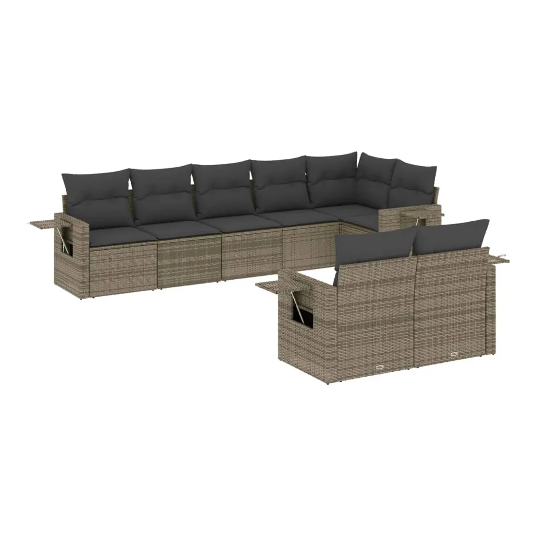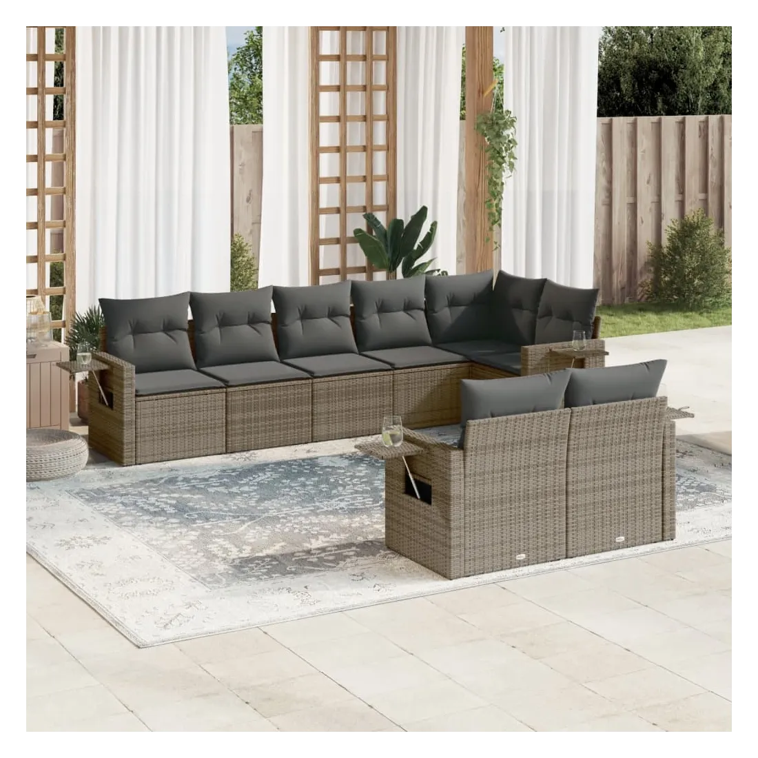 Cet ensemble de canapés de jardin est le complément parfait de votre arrière-cour, terrasse ou patio, offrant un espace confortable et accueillant pour discuter avec la famille et les amis ou simplement se détendre et profiter de l'extérieur. Matériau durable : la résine tressée, également connue sous le nom de poly rotin, est un matériau synthétique solide et nécessitant peu d'entretien qui ressemble au rotin naturel. Il est léger, facile à nettoyer et couramment utilisé pour les meubles d'extérieur en raison de sa durabilité et de ses propriétés de résistance aux intempéries. Table d'appoint pratique : ce mobilier d'extérieur comprend des tables d'appoint pliables avec un ressort à gaz sur les accoudoirs, offrant des endroits pratiques pour garder vos essentiels à portée de main. Expérience d'assise confortable : ce mobilier d'extérieur, doté de coussins épais, offre une expérience d'assise confortable. Housse amovible et lavable : ces coussins de siège sont dotés de housses amovibles pour un lavage et un entretien faciles.Conception modulaire : cet ensemble de meubles d'extérieur a une conception modulaire, ce qui le rend complètement flexible et facile à déplacer, afin que vous puissiez créer un agencement de meubles d'extérieur personnalisé. Bon à savoir :Pour que vos meubles d'extérieur restent beaux, nous vous recommandons de les protéger avec une housse imperméable.